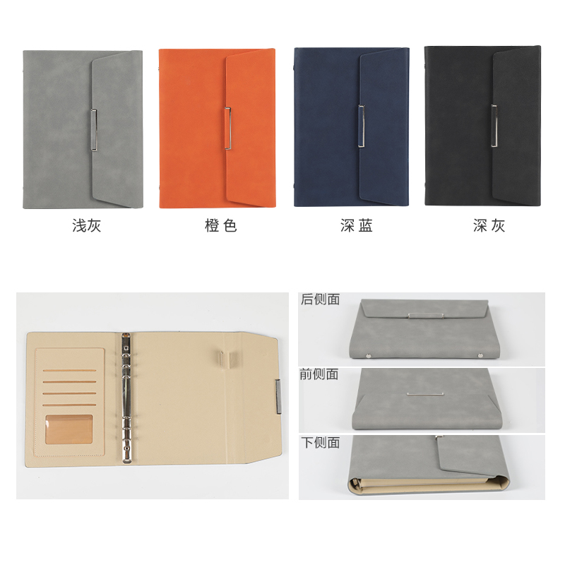 Leather notebook loose-leaf three-fold buckle A5 work meeting record book business office custom logo notepad B5 lettering simple gift boxed diary 6-hole removable replacement inner core