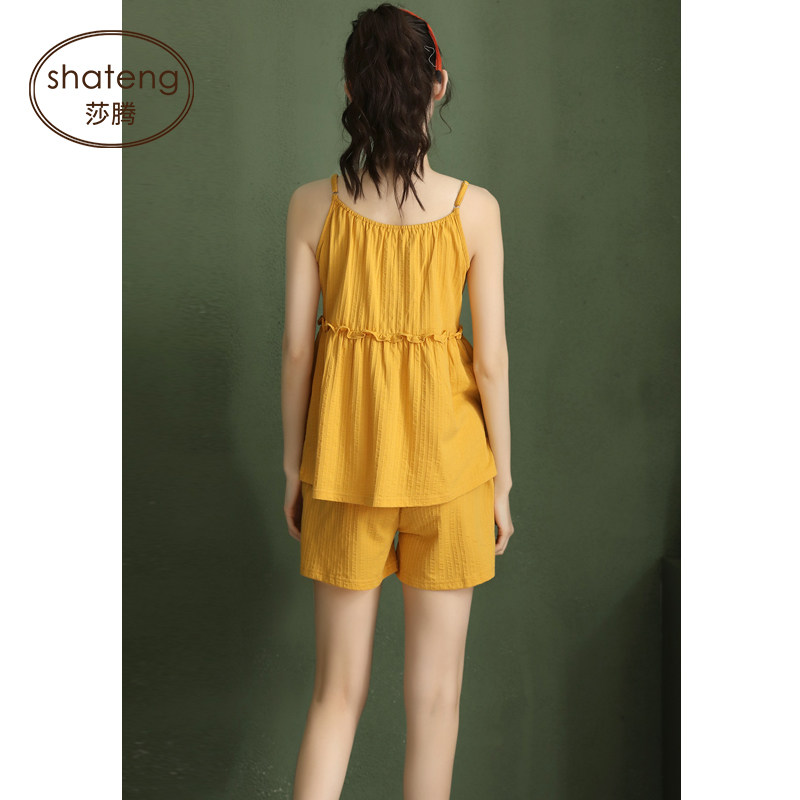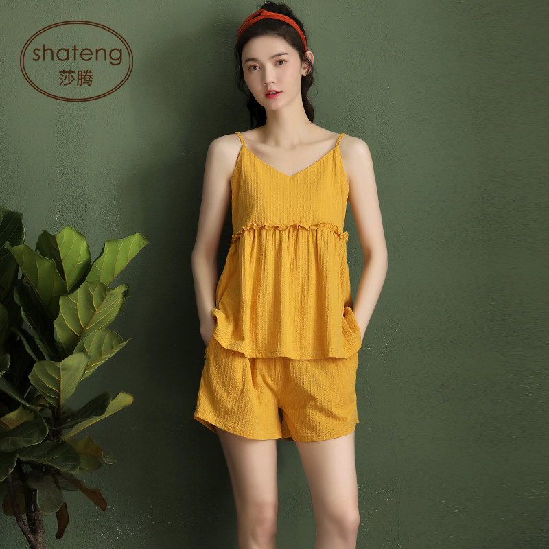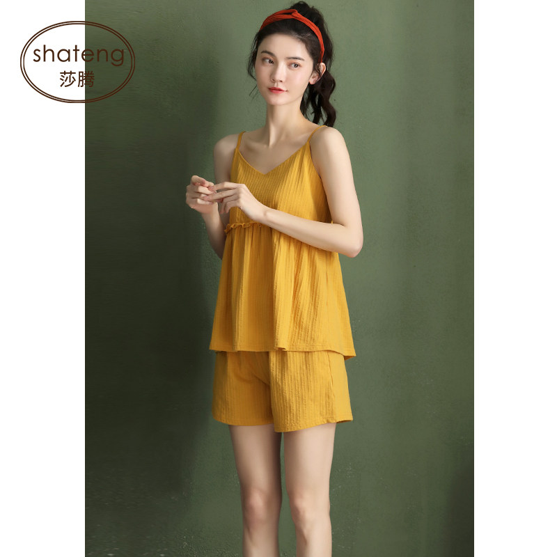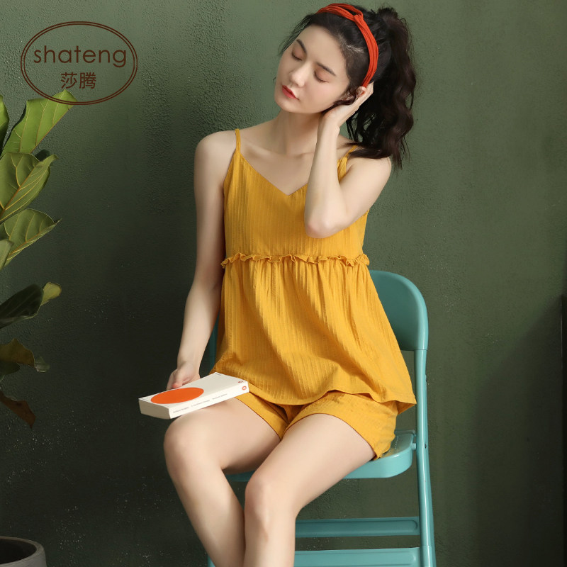 Pajamas women's summer suspenders shorts pure cotton sweet fresh thin section cotton sleeveless vest home service two-piece suit