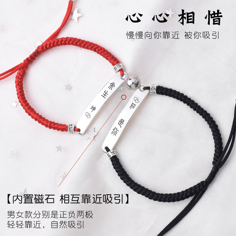 (Couple 1 pair - heart pity)Leather rope Men black red rose gift box (couple 1 pair)Leather rope - Black men (couple 1 pair) Hand compilation of men and black red rose gift