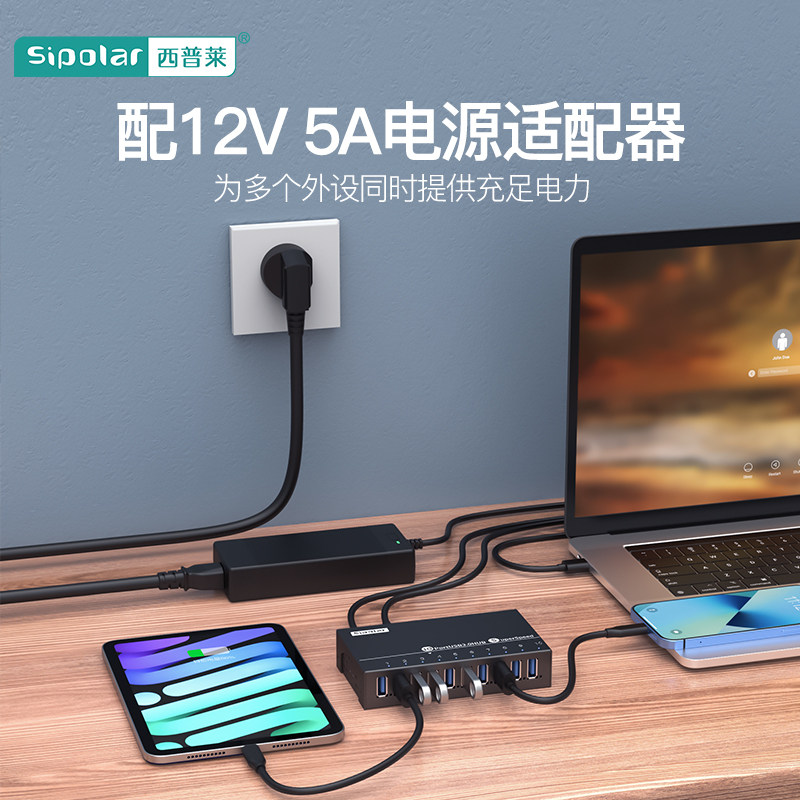 Sipley A-103 industrial grade one tug 10 mouth USB3 0 high speed expansion hub mobile phone group control brushing machine testing the HUB extension cord with external power supply