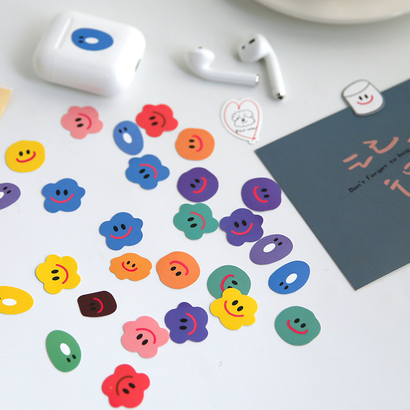 Korea ins cute minimalist with colorful smiley face small sticker hand ledger Decorative Sticker with mobile phone protective shell iPad stickers