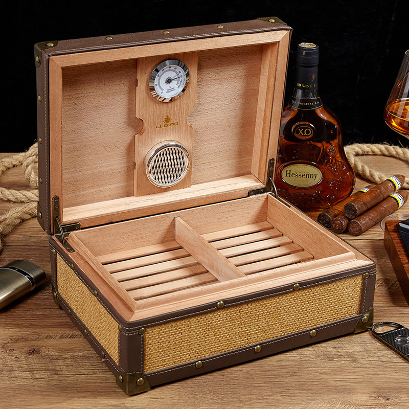 LUXFO classical cigar humidor two-layer four-zone antique cigar box 50 pack cigar box cedar wood mellow