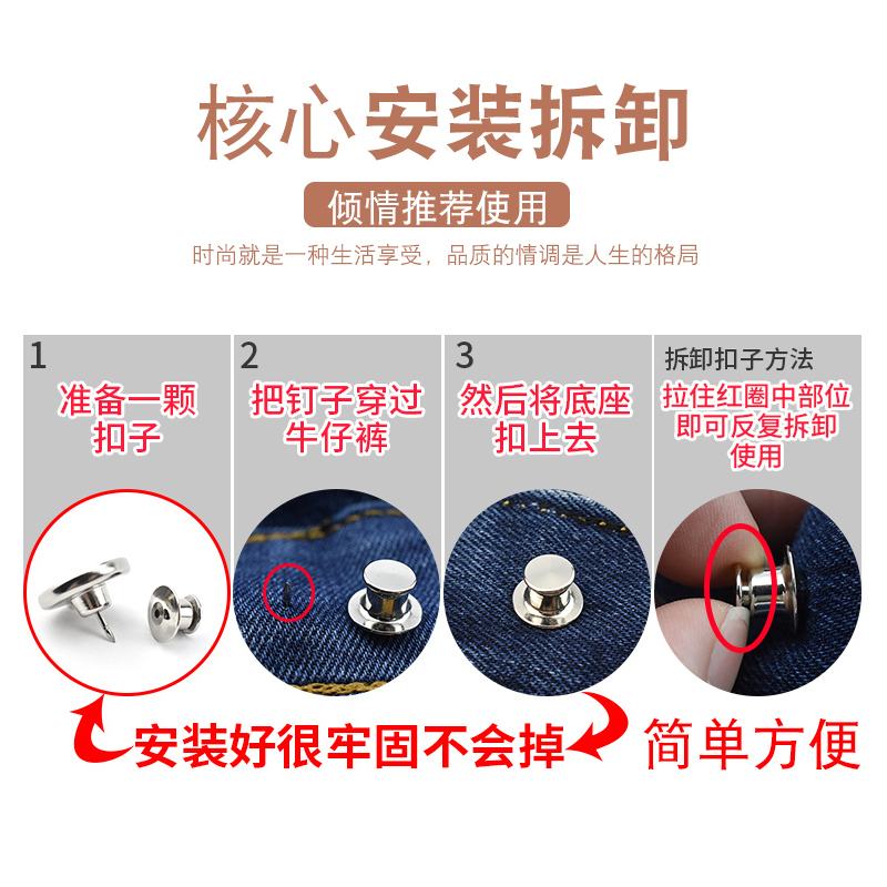 Nail-free closeted waist button Jeans Pants with detachable trouser waist Pants Waistline Pants Head Tightness Adjusted for Pants Cashew Pants Cassera Cassera
