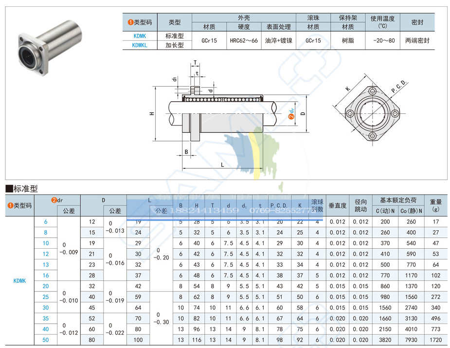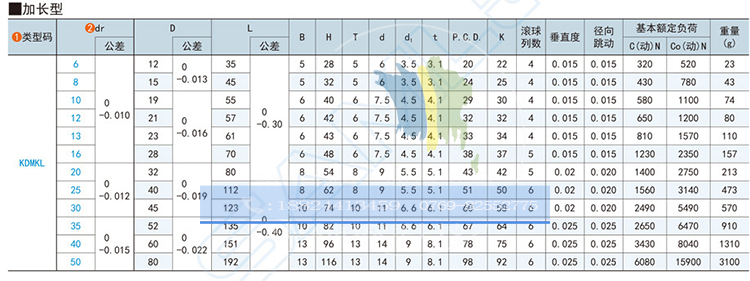 Lengthened embedded flange linear bearing KDMKL-6-8-10-12-13-16-20-25-30-35-40-50