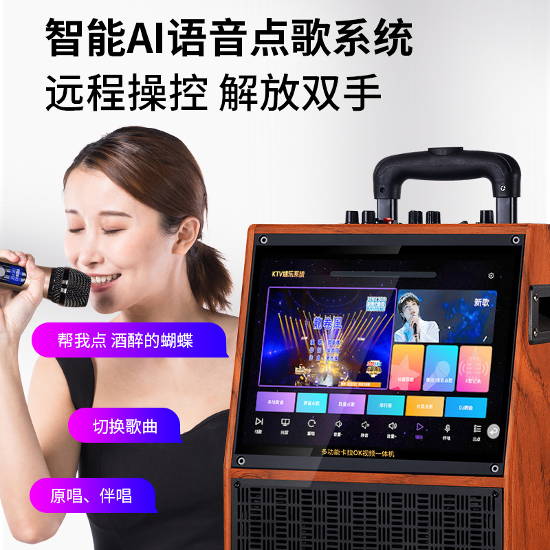 Konka square dance audio with display screen Wireless microphone Intelligent voice point singing song Outdoor high-power volume three-frequency mobile home KTV Karaoke all-in-one machine Bluetooth speaker