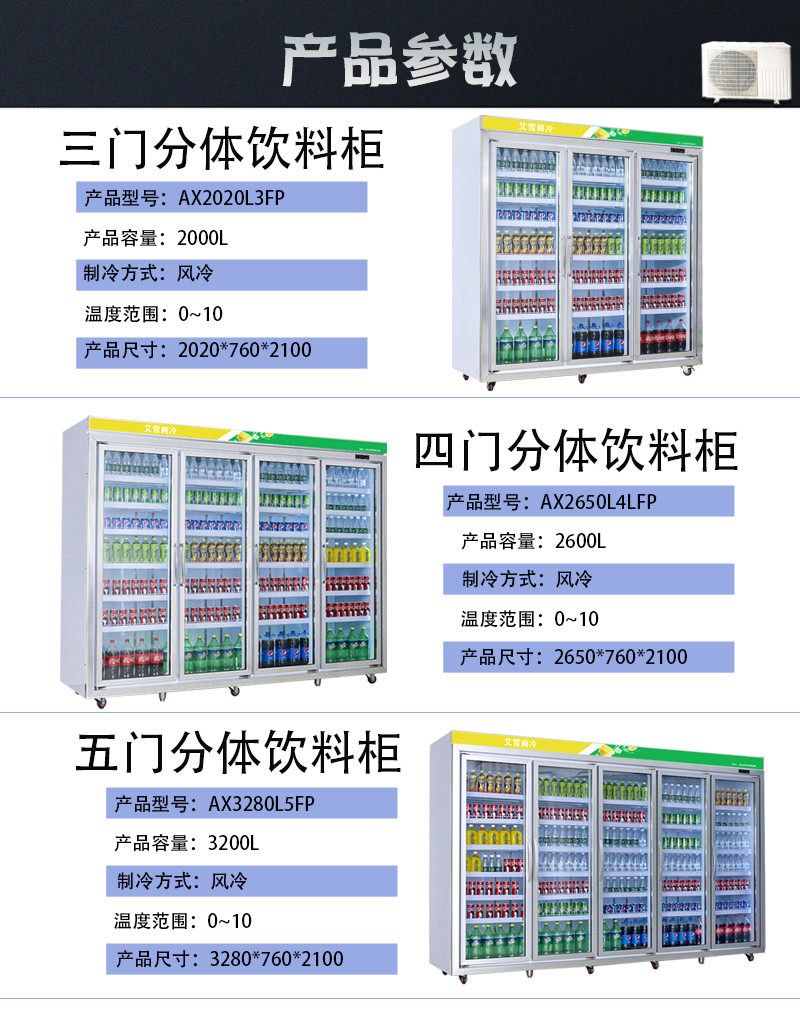 Three Doors 2020 Flower Refrigerated Display Cabinets Four Doors 2650 Four Doors Commercial Freezers Five Doors 3280 External Display Cabinets Four Doors Two Piece Display Cabinets Defogging Doors Two Doors Supermarket Beverage Water Cabinets