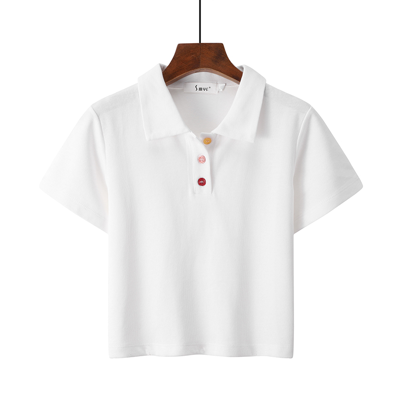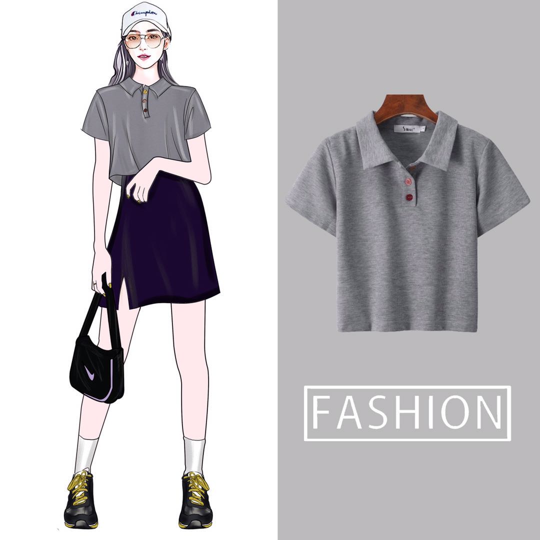 2021 summer new item popular ins tide loose high waist short section umbilical top lapel polo shirt short sleeve t-shirt women