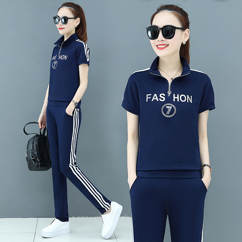 Square Dance Casual Sports Suit Women Pure Cotton Summer Dress Garden Suit New Foreign Pie Short Sleeve Dancing Sportswear two sets