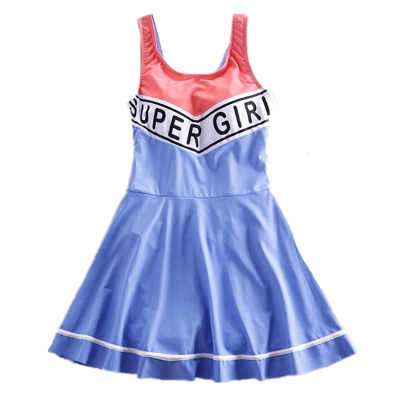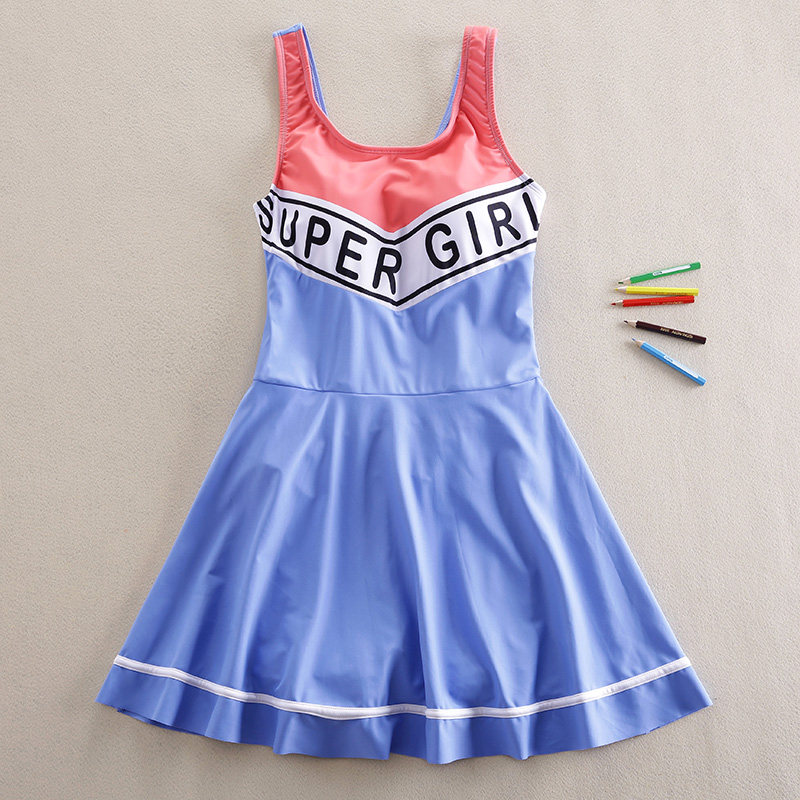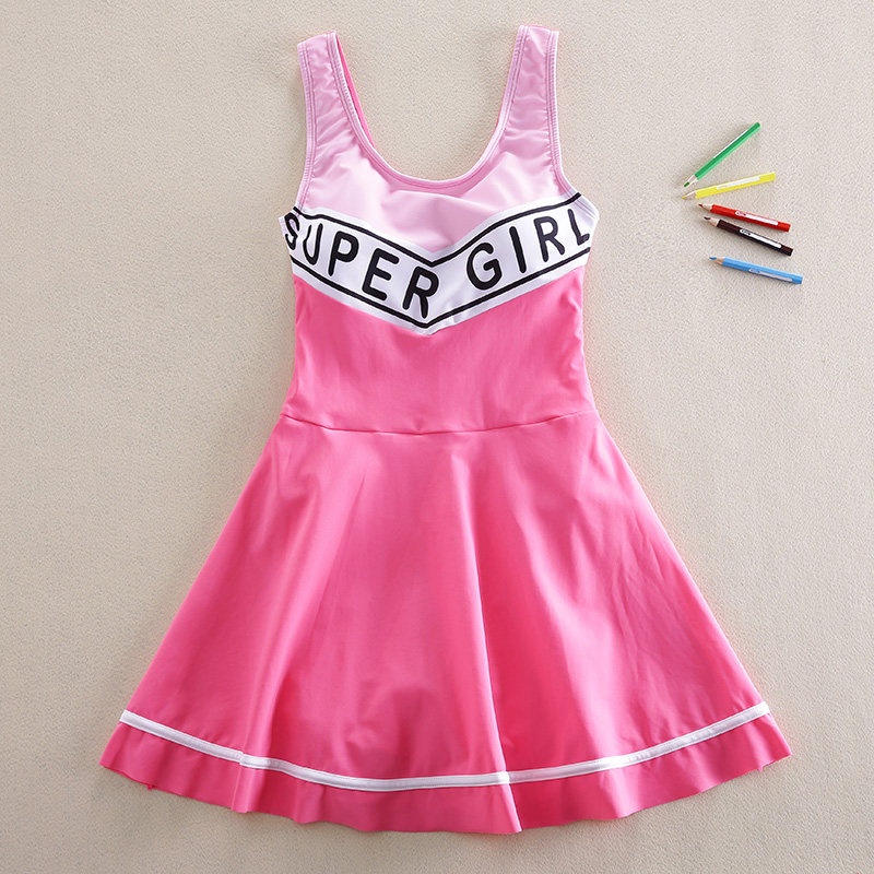 2020 new girl's one-piece swimsuit skirt-style CUHK Four-corner Pants Swimsuit Student 12 Children Swimsuit 15 years old