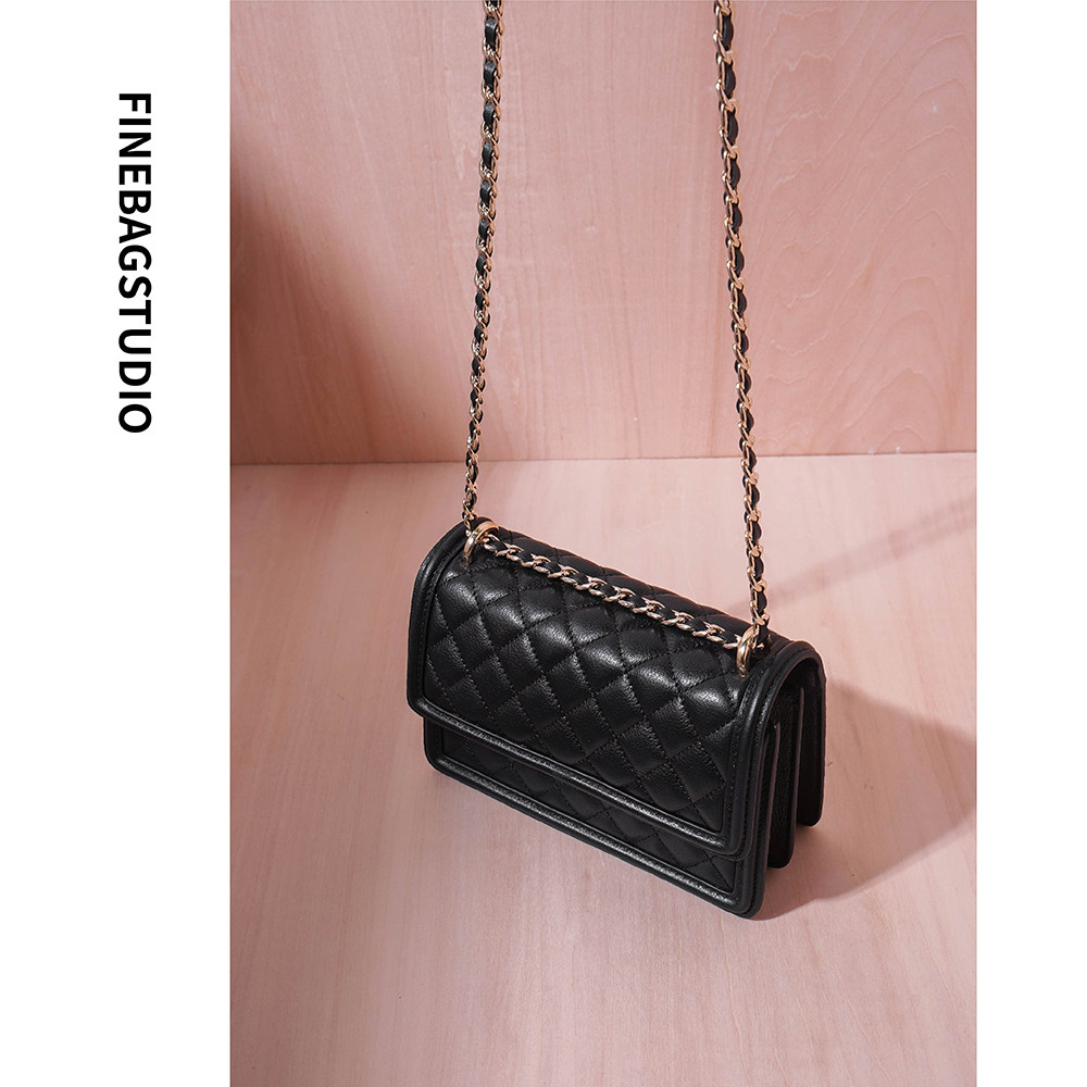 2022 spring new leather messenger bag niche design small bag small fragrance style diamond chain bag tide all-match