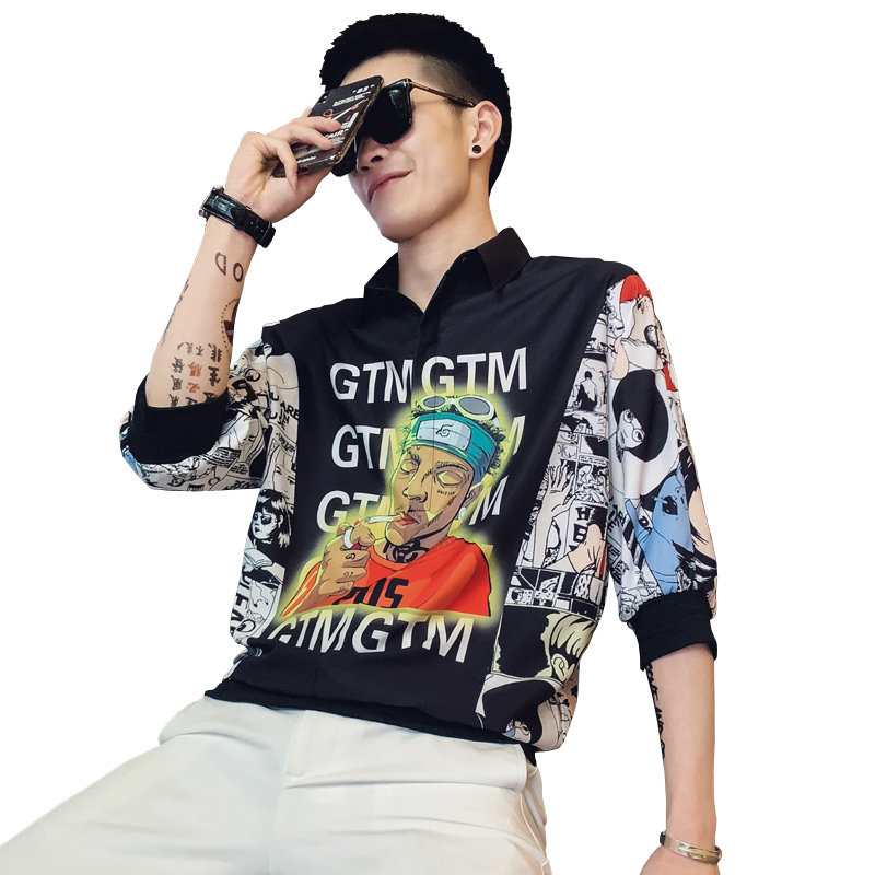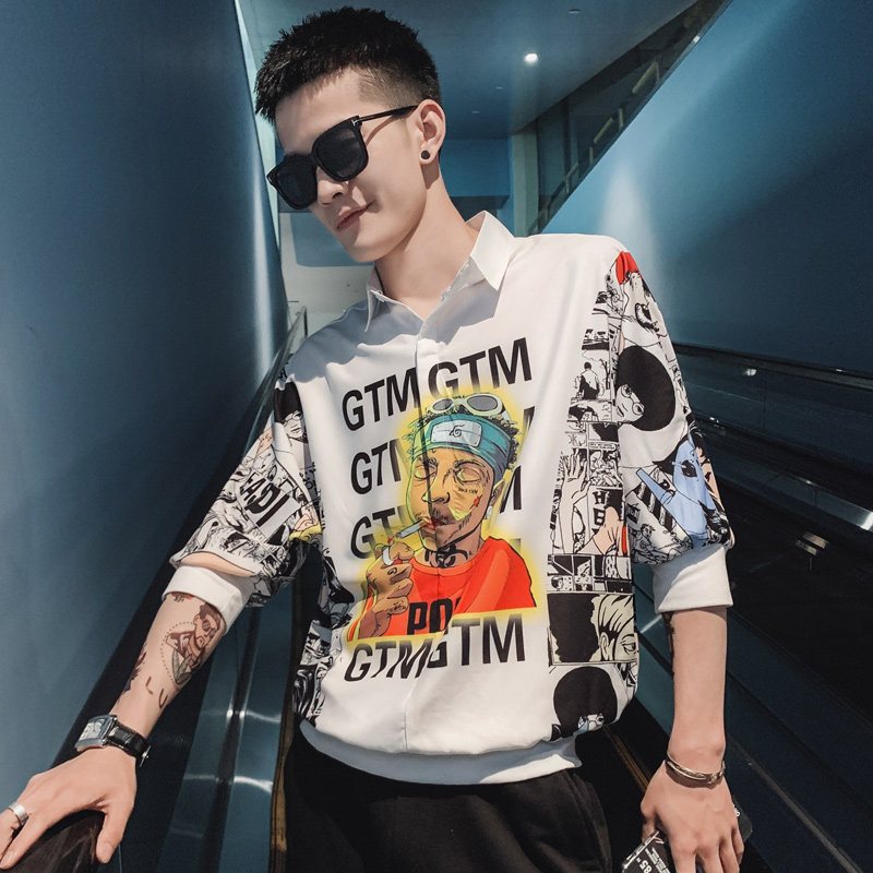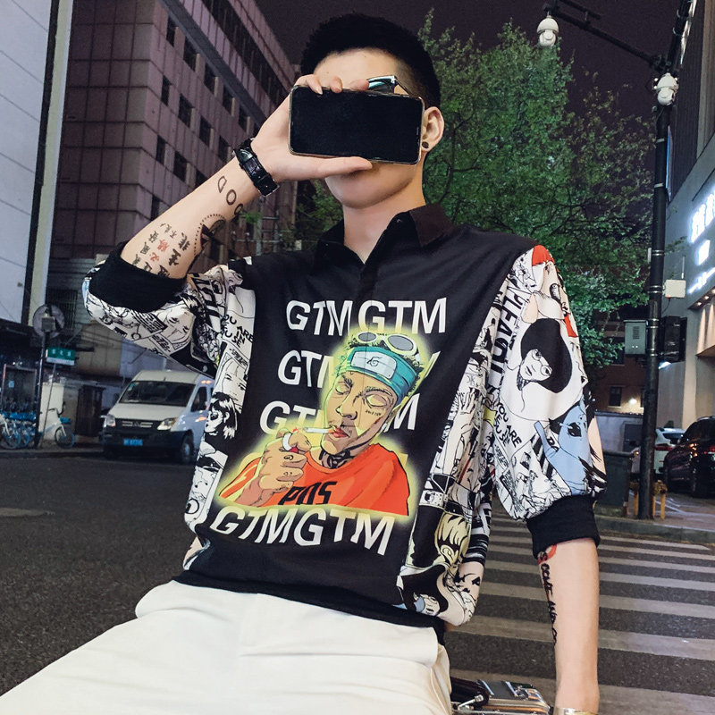 Net Red Tide brand short sleeve shirt men Korean version of the trend of personality fashion wild ruffian handsome summer half sleeve coat clothing