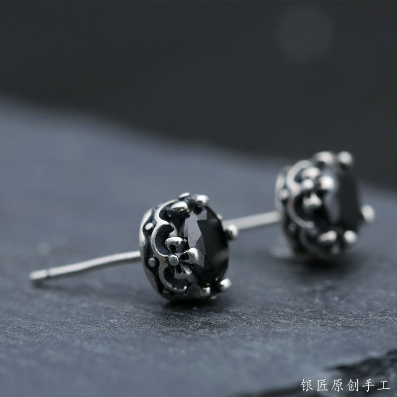 s925 sterling silver earrings for men and women 2020 new trend black retro simple cold wind earrings ear raising hypoallergenic