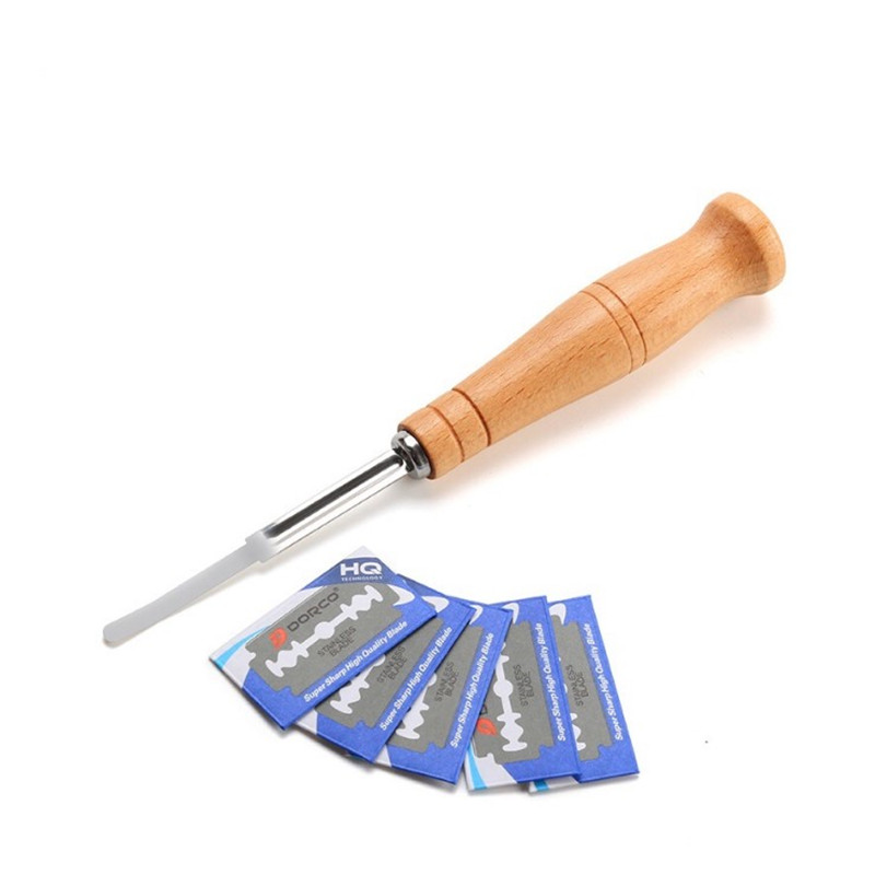 Alkaline bag with wooden handle arc-shaped cutting knife can change the blade French stick European bag cake bread cutting knife baking tool