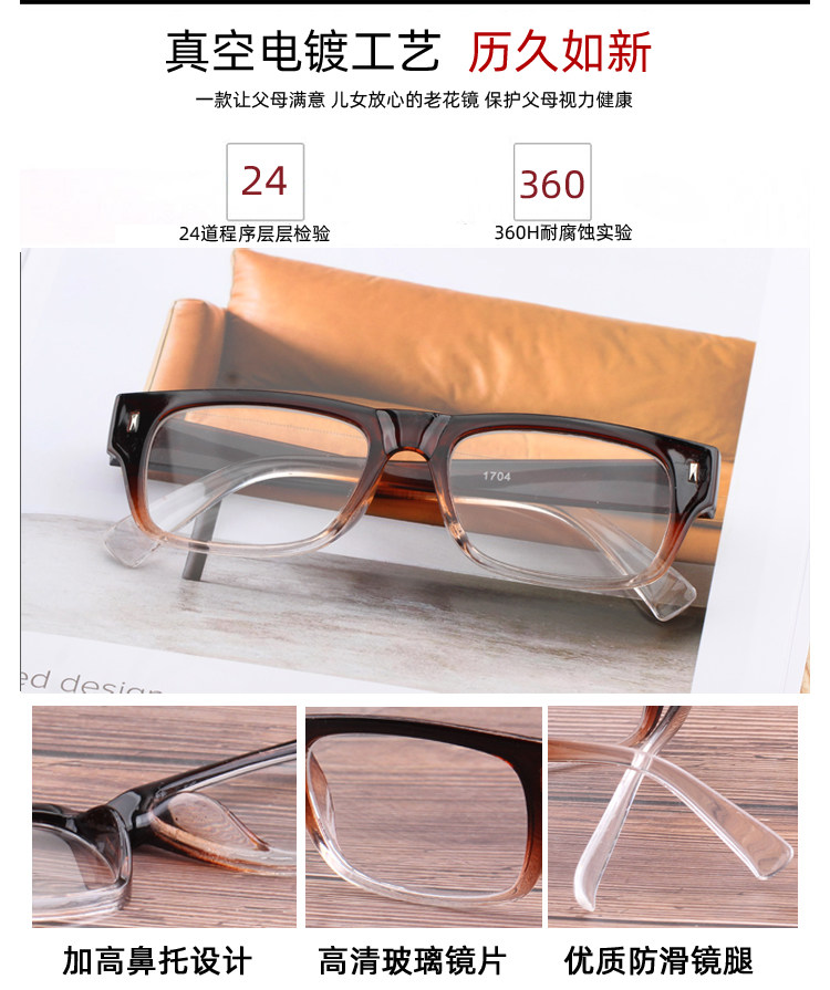 Crystal old flower glasses glass lenses crystal old flower glasses men and women the same high-definition elderly 150200250 degrees 300