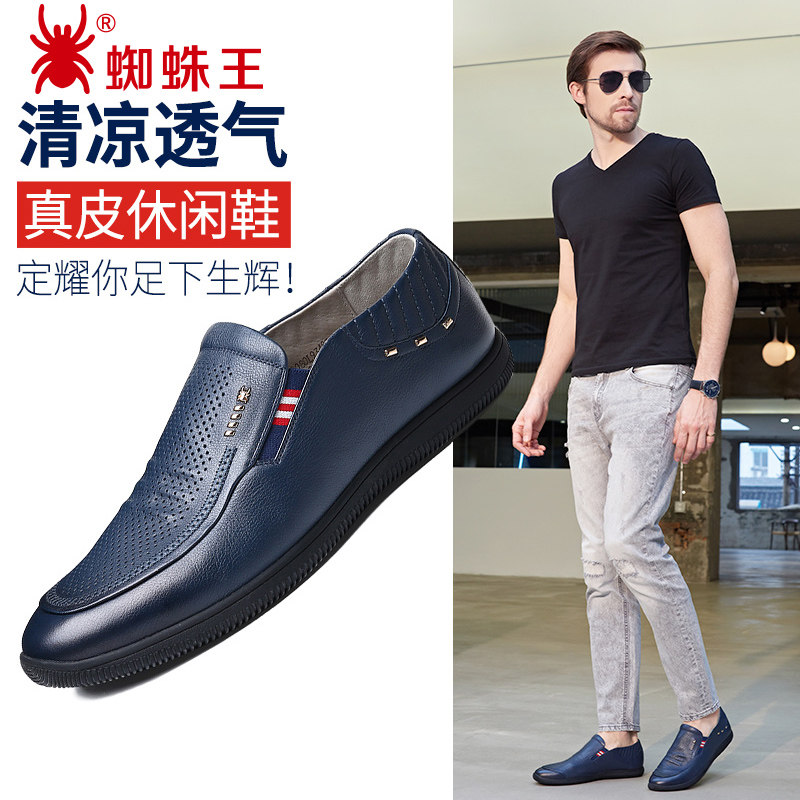 Spider King Strapless Leather Shoes Men's Summer Youth Men's Leather Casual Hollow Breathable Hollow Soft Sole Men's Shoes