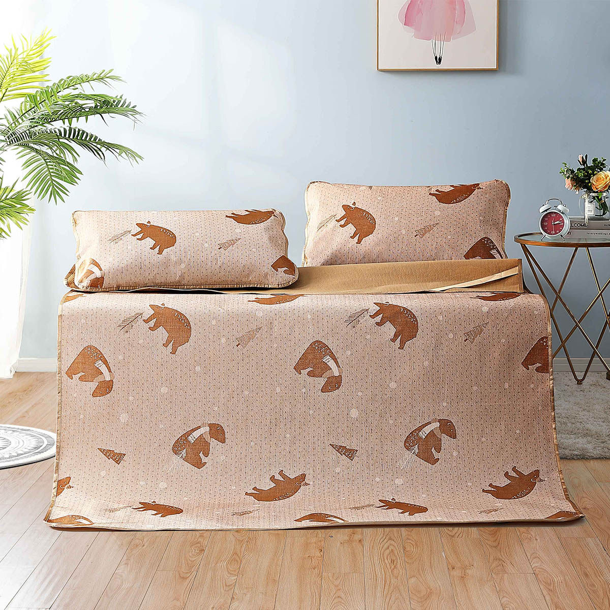 Art's Bear Treasure Jacquard Ice Silk Mat (Wheat Color) Art's Bear Treasure Jacquard Ice Silk Mat (Coral Powder) Art The Bear Treasure Jacquard Ice Silk Mat (Baby Blue)