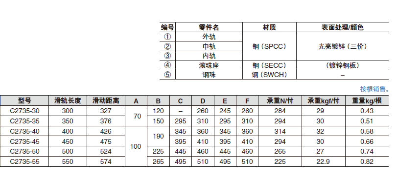 Accuride Jacosolid three-section steel slide rail drawer rail side fit full-draw full stretch track C2735