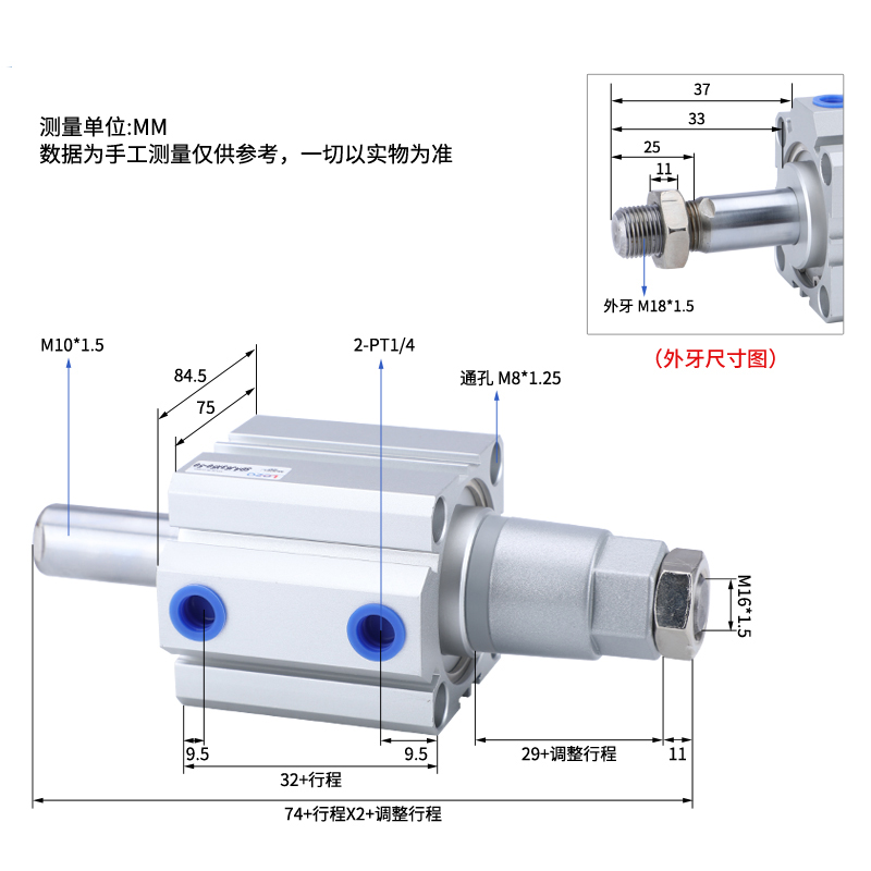 Mask machine model adjustable slim cylinder SDAJ50-5X10X20X30X40X50X60X70X80X100SB