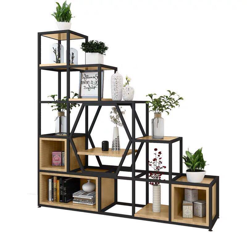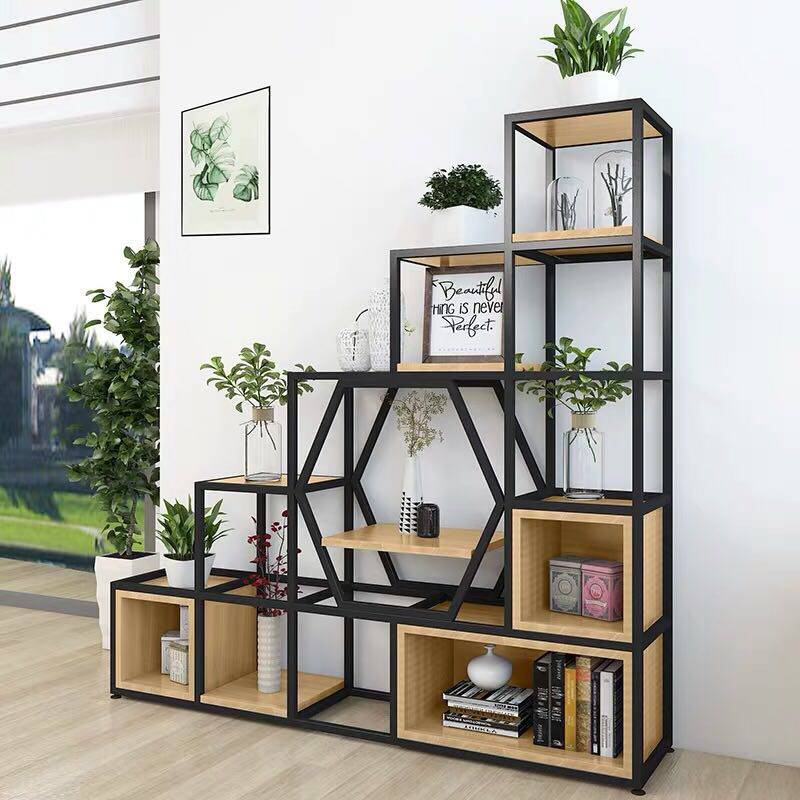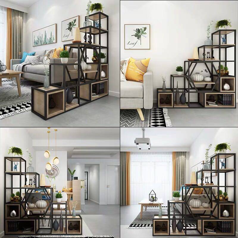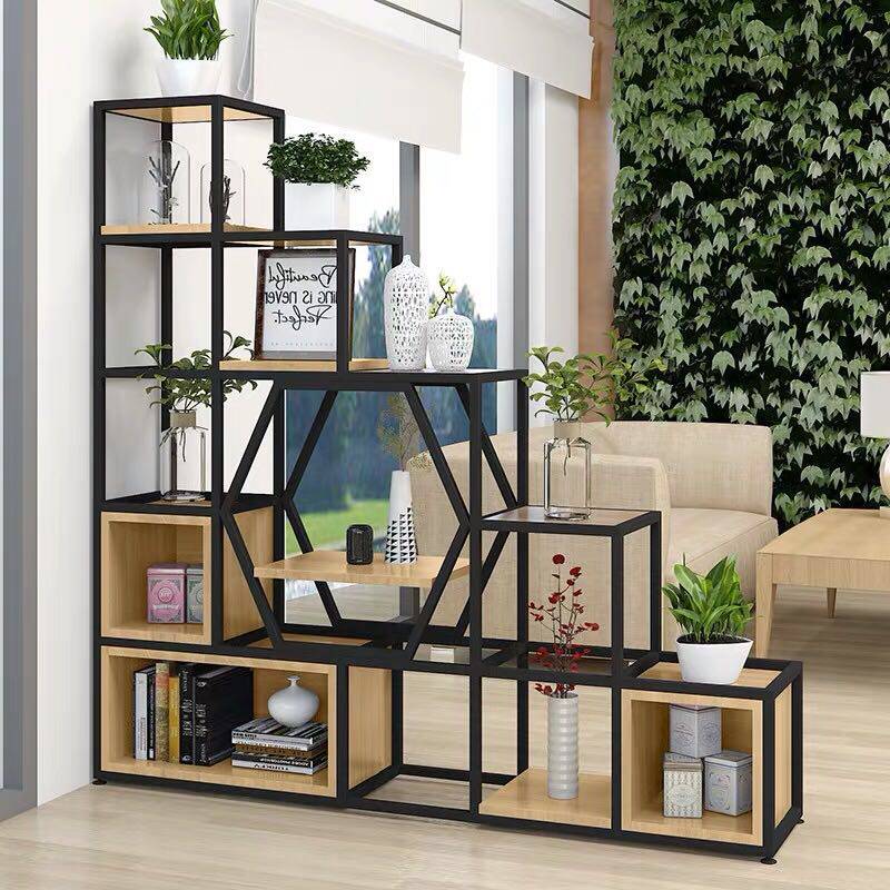 Living Room Iron Art Partition Dining Room Screen Modern Minimalist Display Cabinet Solid Wood Separator Trapezoidal Shelf Loft Bookshelf