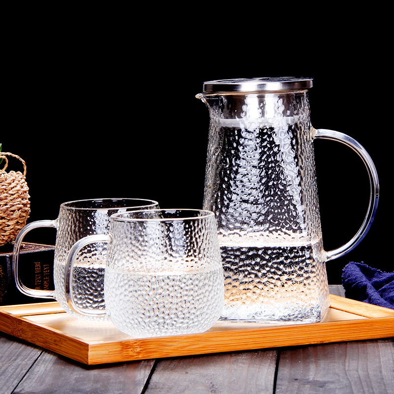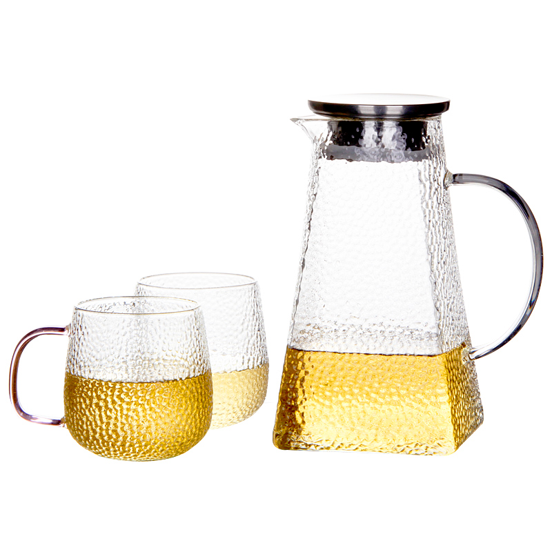 Thickened hammer-shaped cold kettle large-capacity square cold kettle explosion-proof glass transparent cold water cup household teapot set