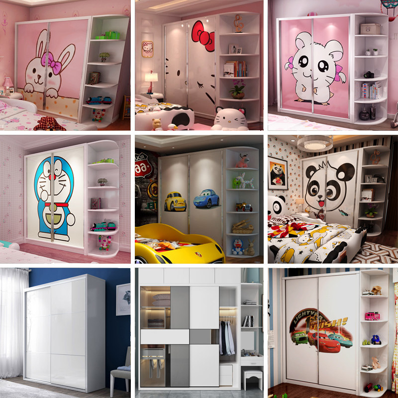 Children's Wardrobe Cartoon Car Paint Sliding Door Sliding Door Bedroom Bedroom Panel Creative Customizable Door Pattern