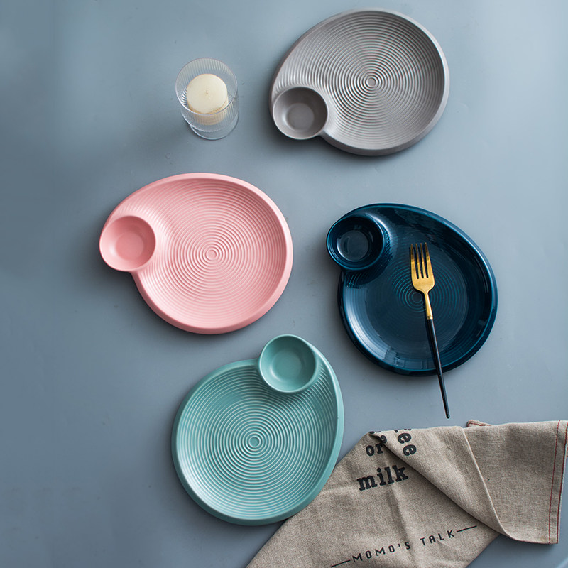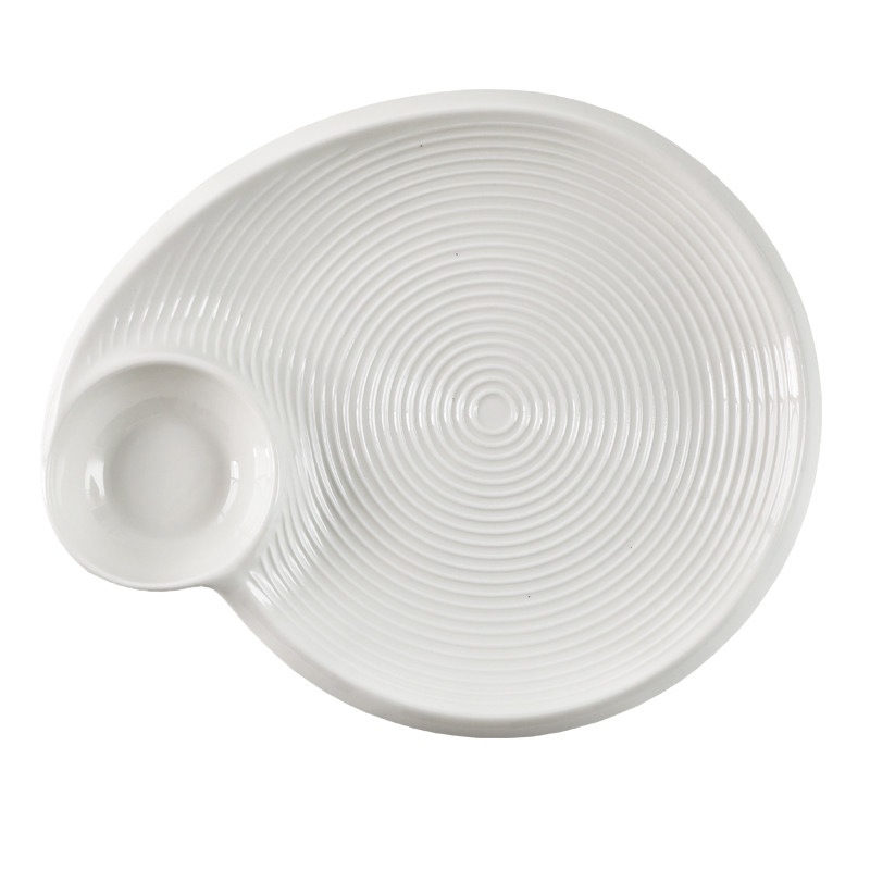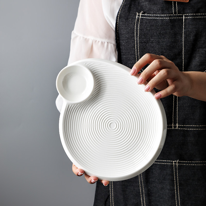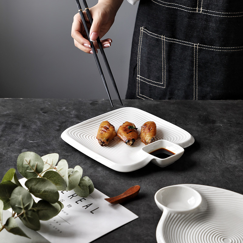 Nordic household creative white ceramic dumplings plate with vinegar dish square dish snack dish
