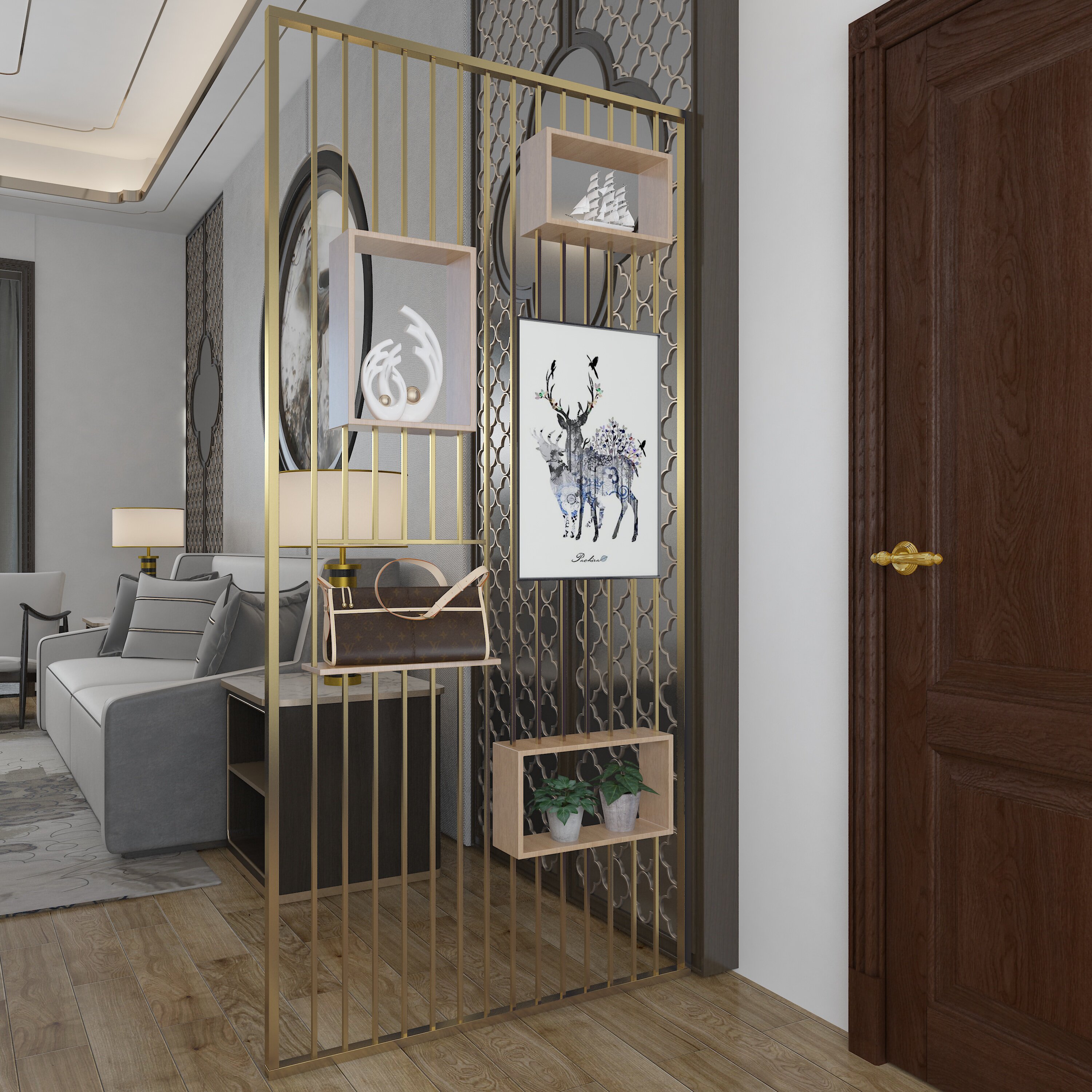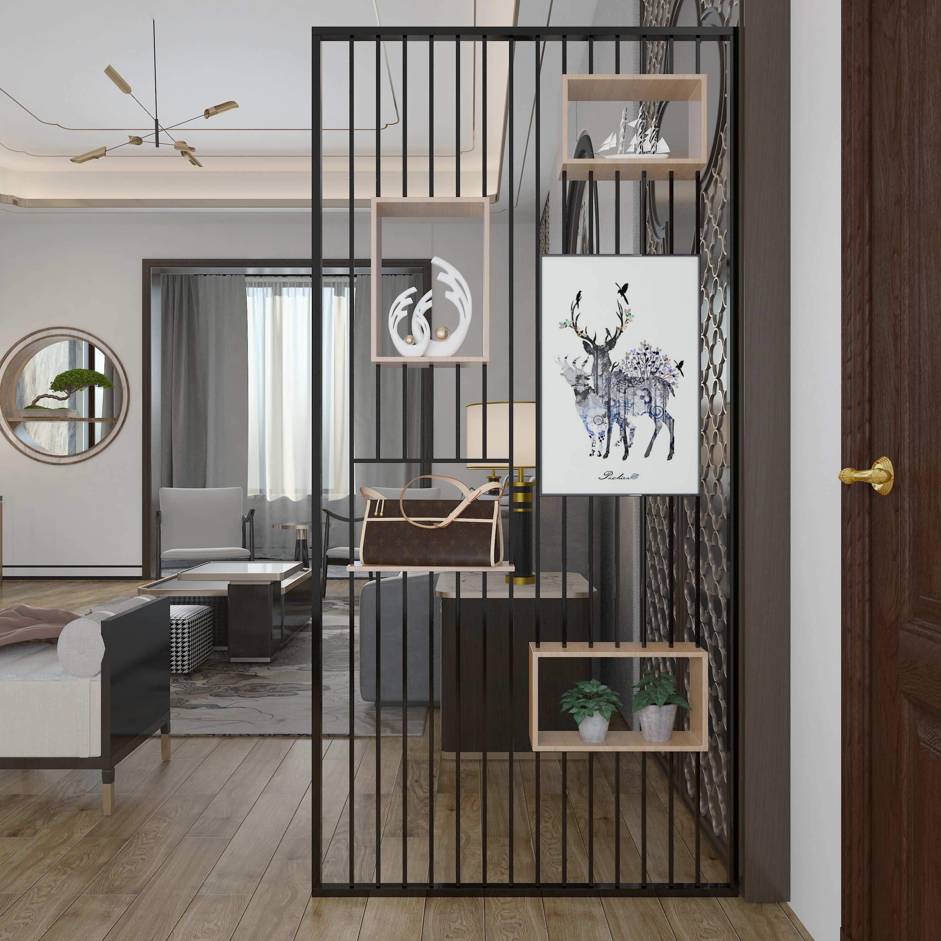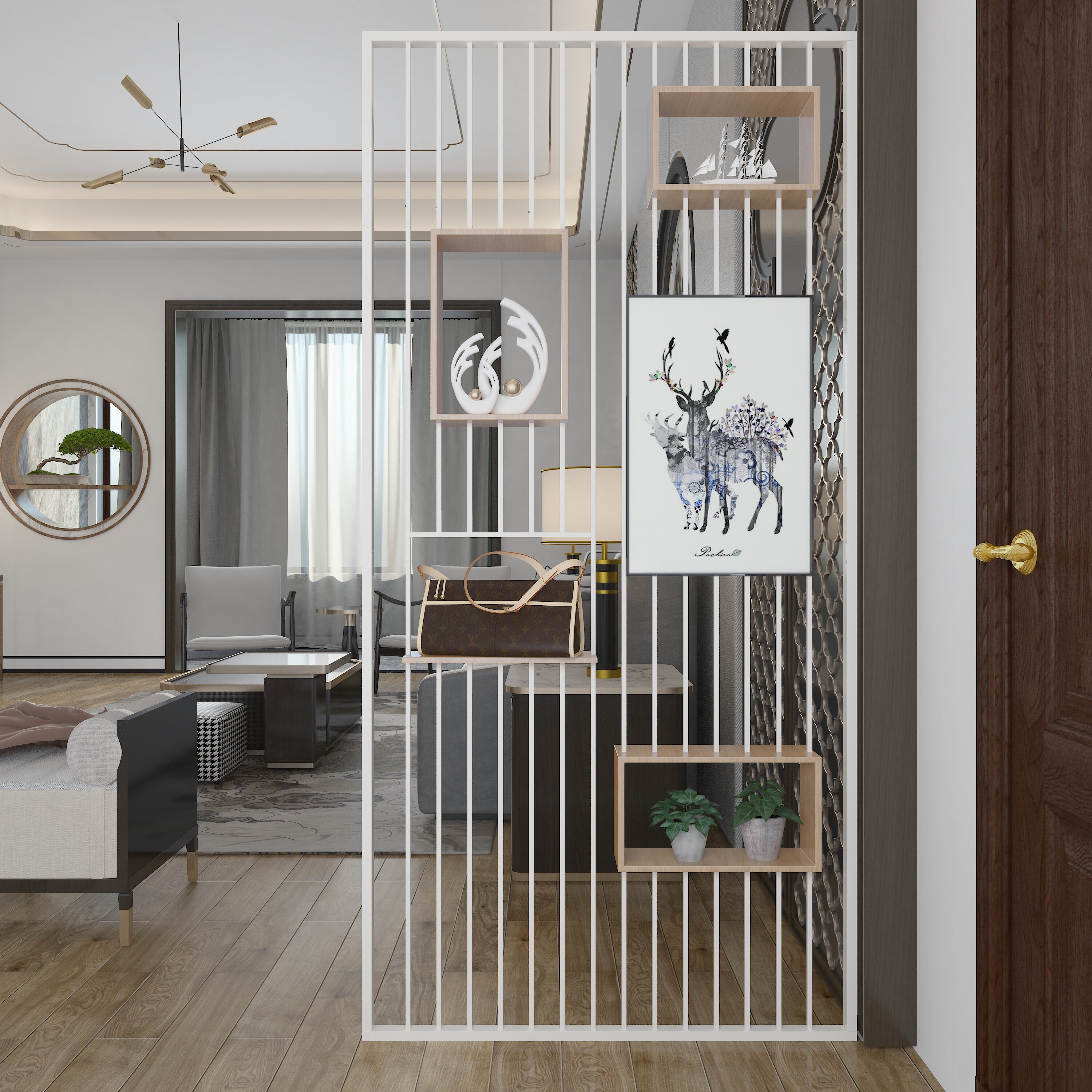Nordic Living Room Cubicle Shelve Shelve entrance to the family Xuanguan Dining Room Partition Hollowed-out Creative Office Screen Flower Racks Custom
