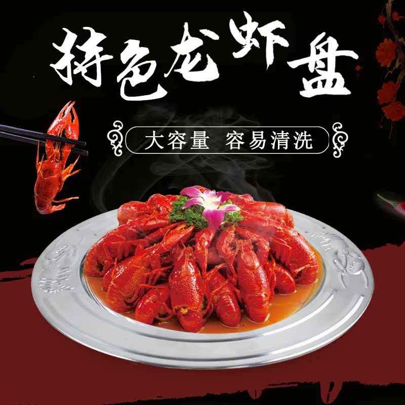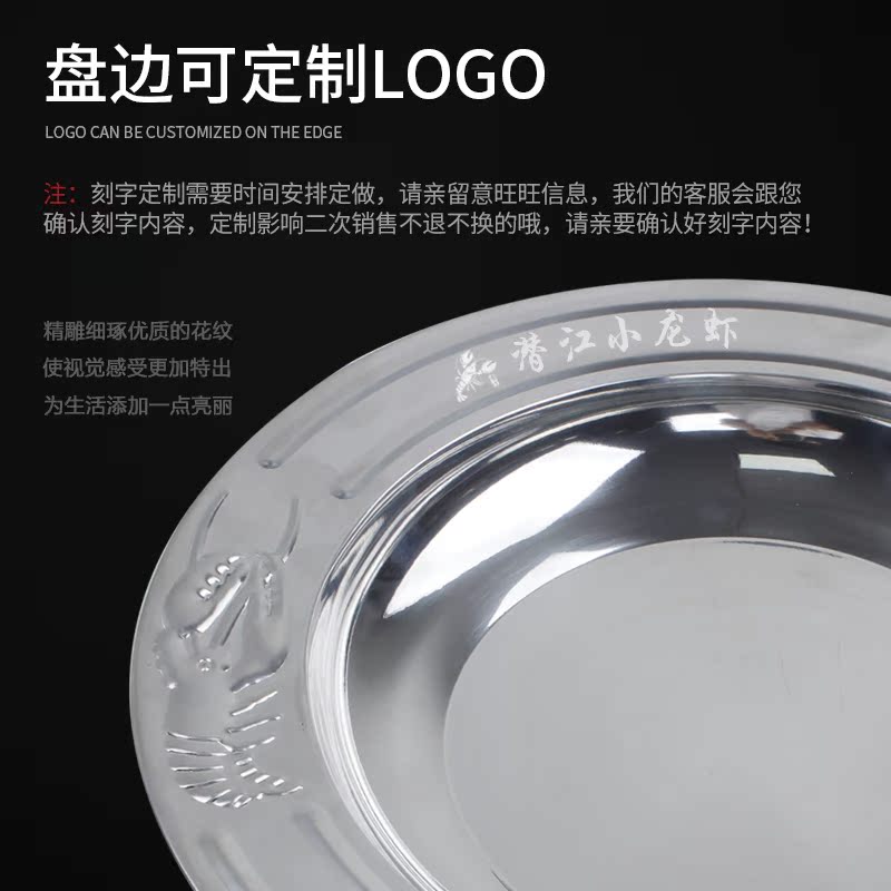 Commercial Stainless Steel Small Lobster Disc Thickened Plate Small Lobster Special Basin Disc Shallow Pan Seafood Ring Savory Spicy Shrimp Pan