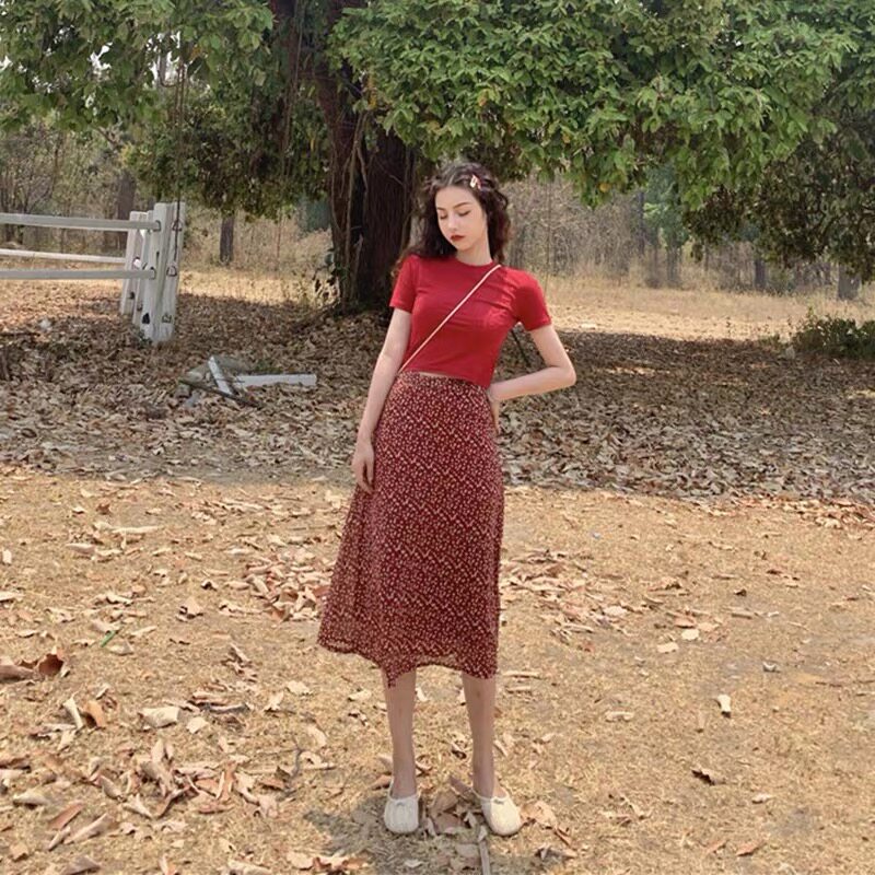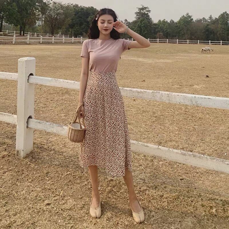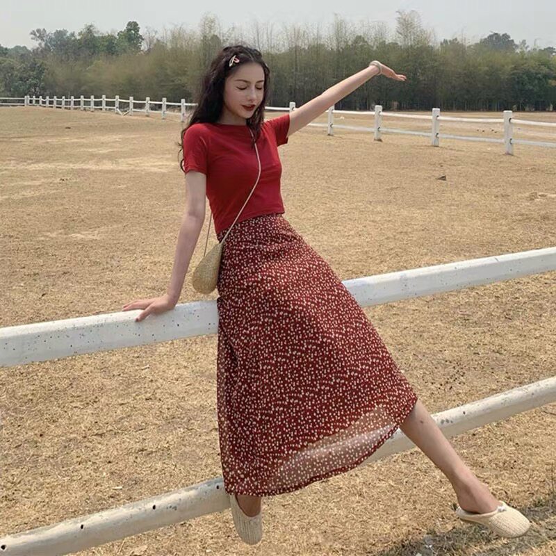 2023 Summer Heben Wind Set dress famous and sweet waist and lean skinny fragmented flower dress two sets