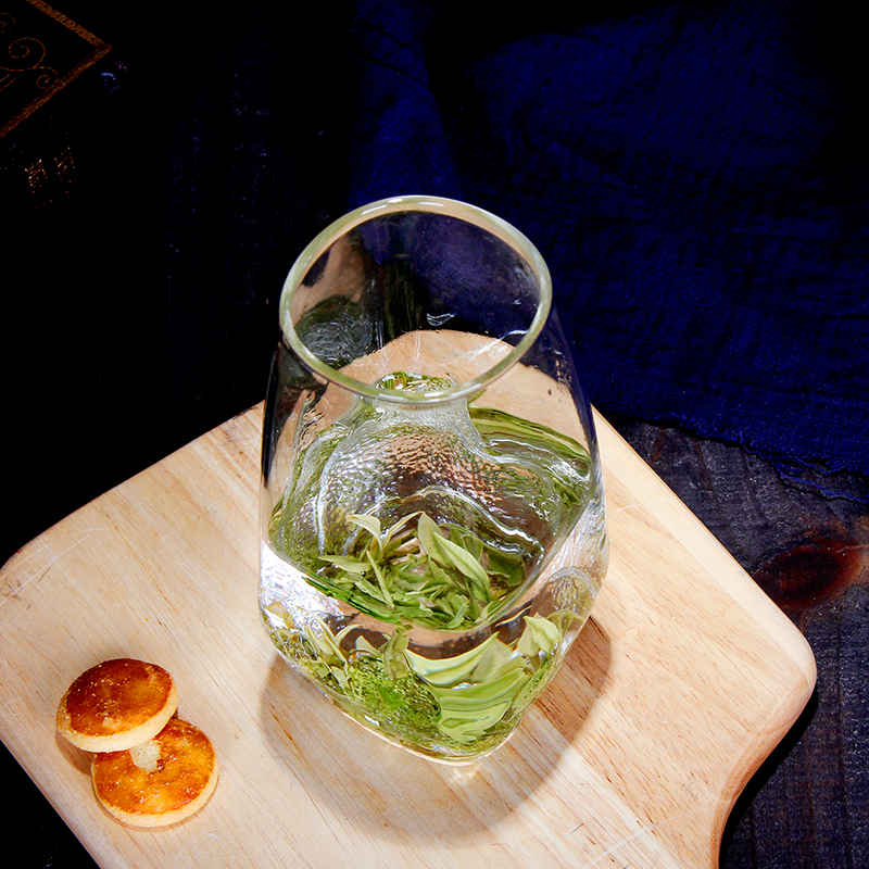 Household glass tea cup Personality green tea cup Office large capacity flower tea cup Transparent creative mountain water cup