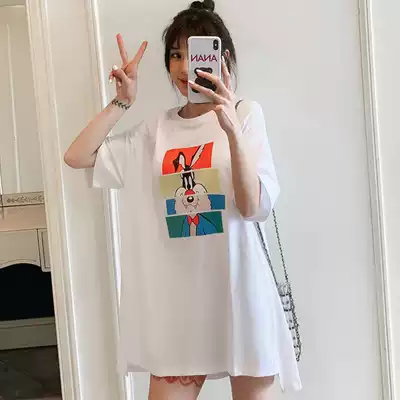 Large size pregnant women short sleeve T-shirt fashion loose summer out leisure starry long coat maternity summer dress