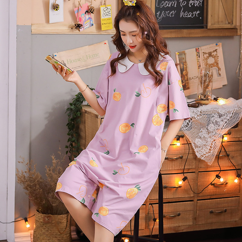 Breastfeeding nightdress women's summer thin cotton short-sleeved large size maternity pajamas one-piece two-piece nightdress pants breastfeeding confinement skirt