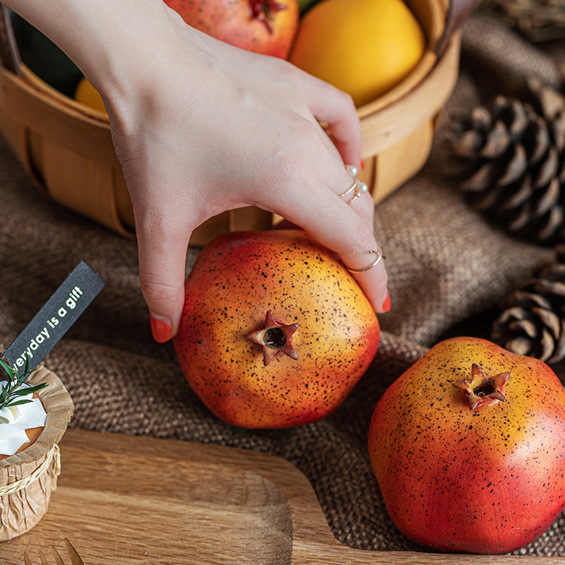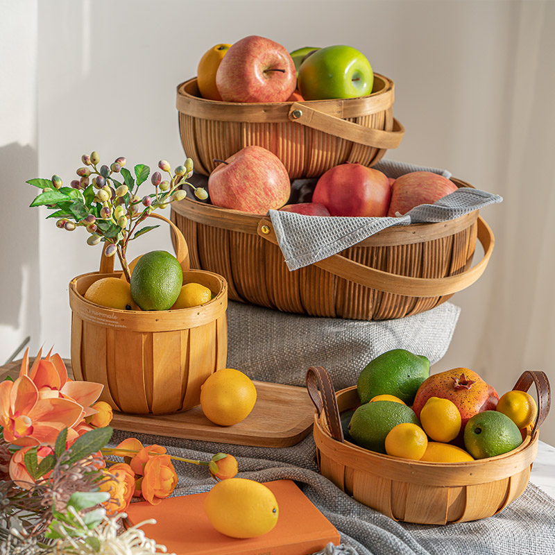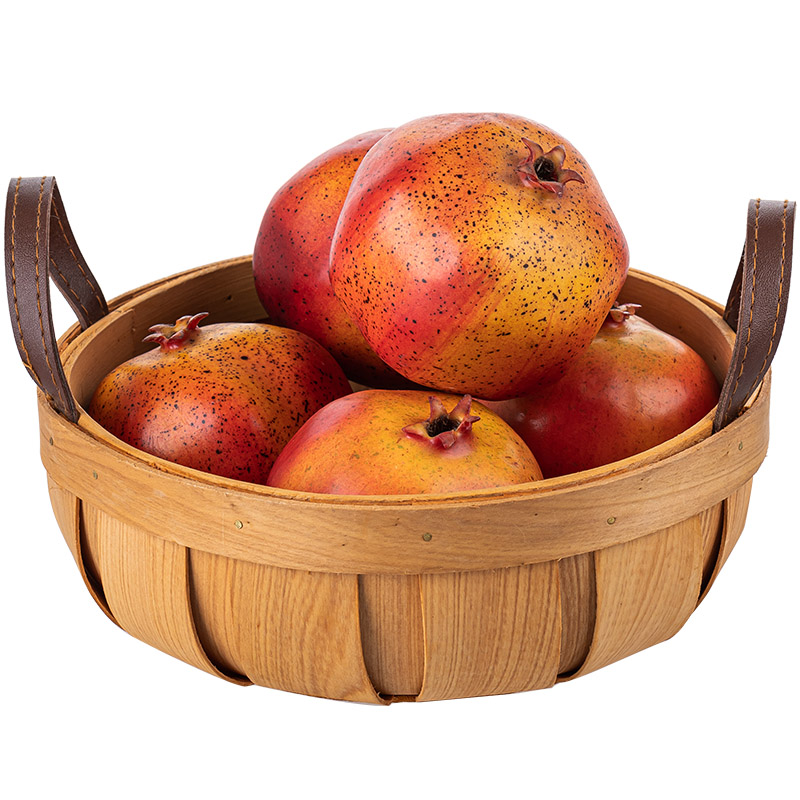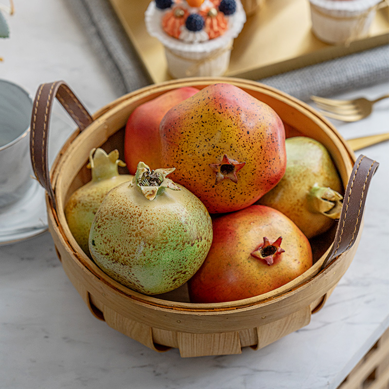 Green astringent-single-accentuate fruit red-single-accentuate woven basket 5 red with pomegranate package metal hollowed-out fruit tray fruit package wood handle oval woven basket-single-large number metal engraved