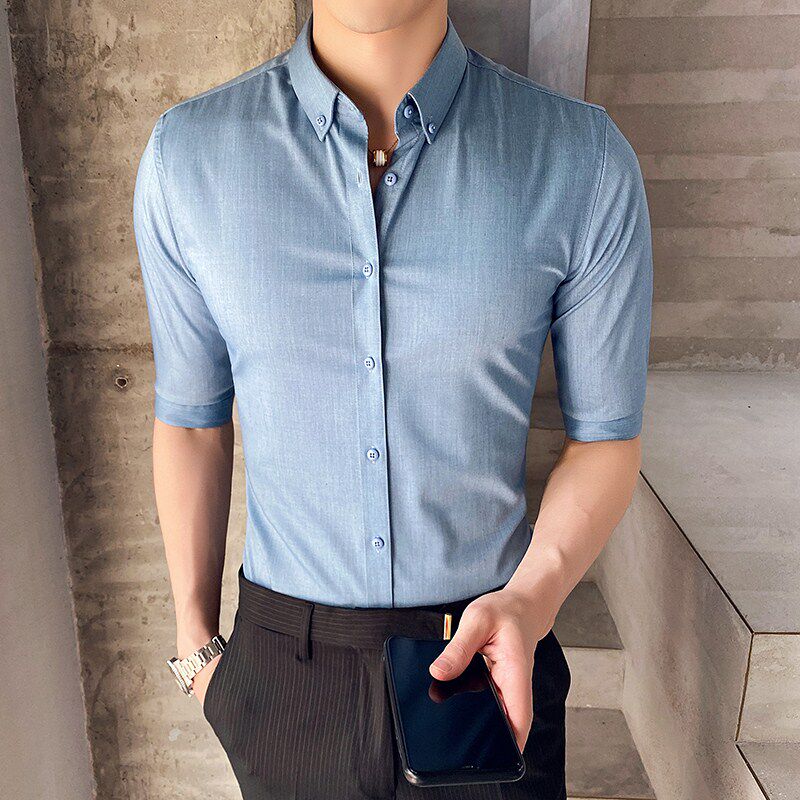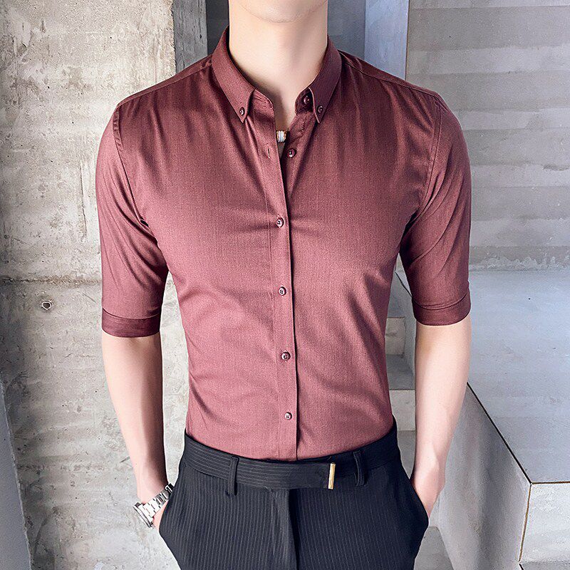 Summer shirt male short sleeve fit Korean version trendy youth handsome free of hot 70% sleeves shirt Inn wind mid-sleeve male