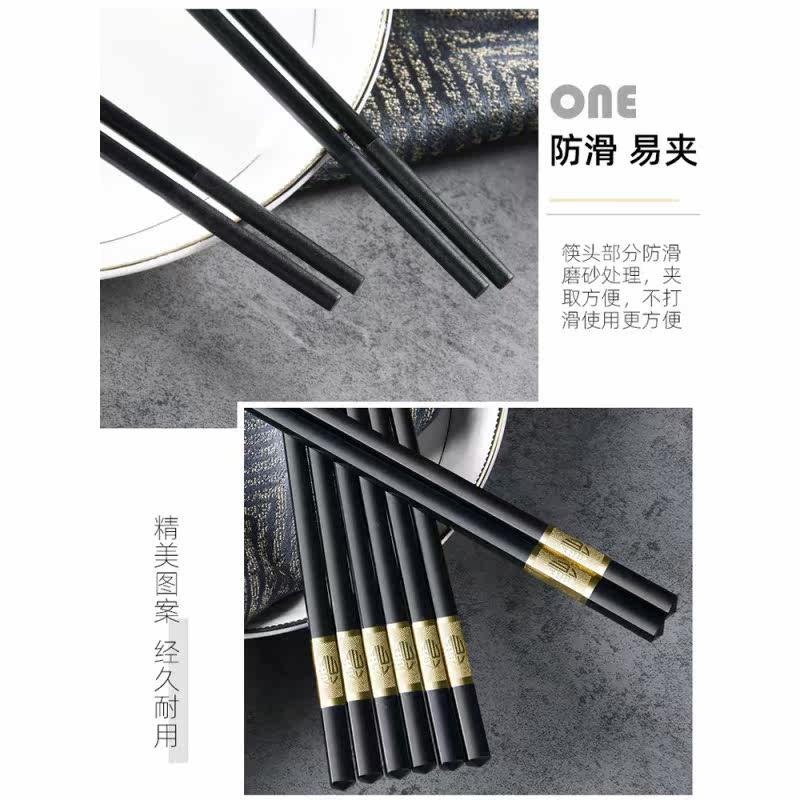 Chopsticks household high-end tableware alloy chopsticks double Japanese faster family anti-slip non-solid wood chopsticks