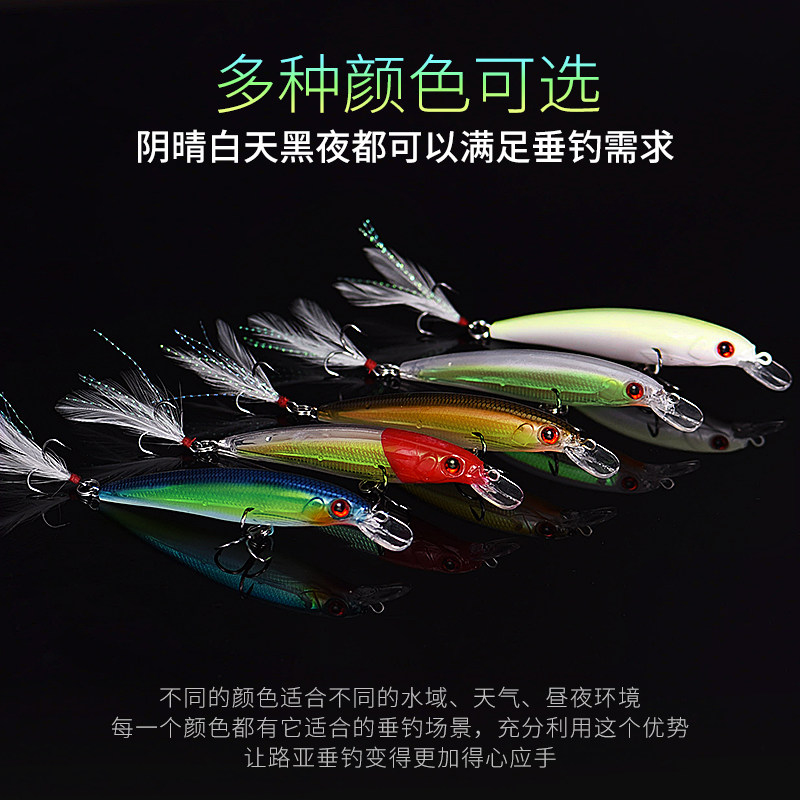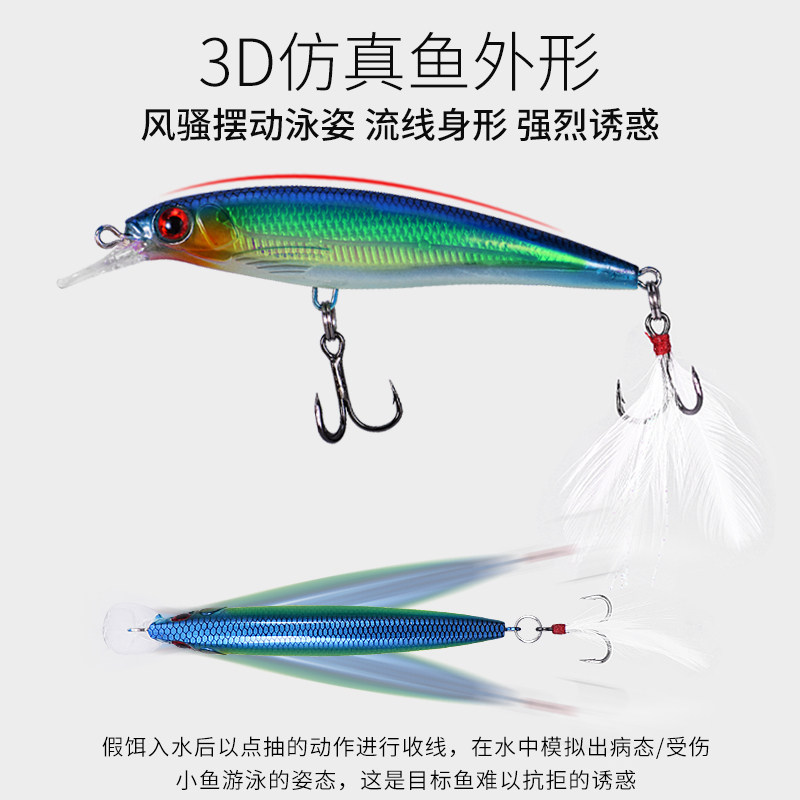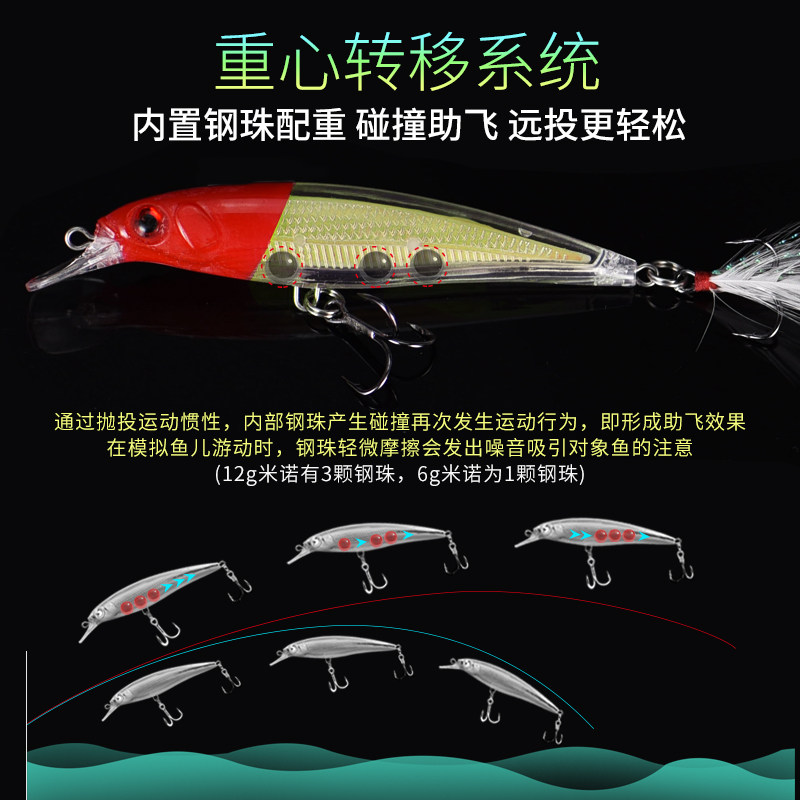 6g red head-laser mino (floating water section) 12g luminous-radium mino (sunken water section) 12g silver fish-laser mino (sunken water section) 6g blue back-laser mino (floating water section)