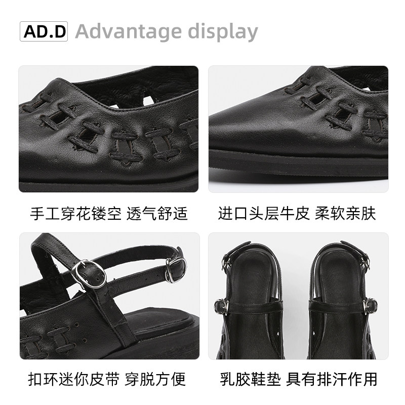 Clearance 228 punched flower sandals 2022 new flat block heel Roman shoes summer breathable women's shoes