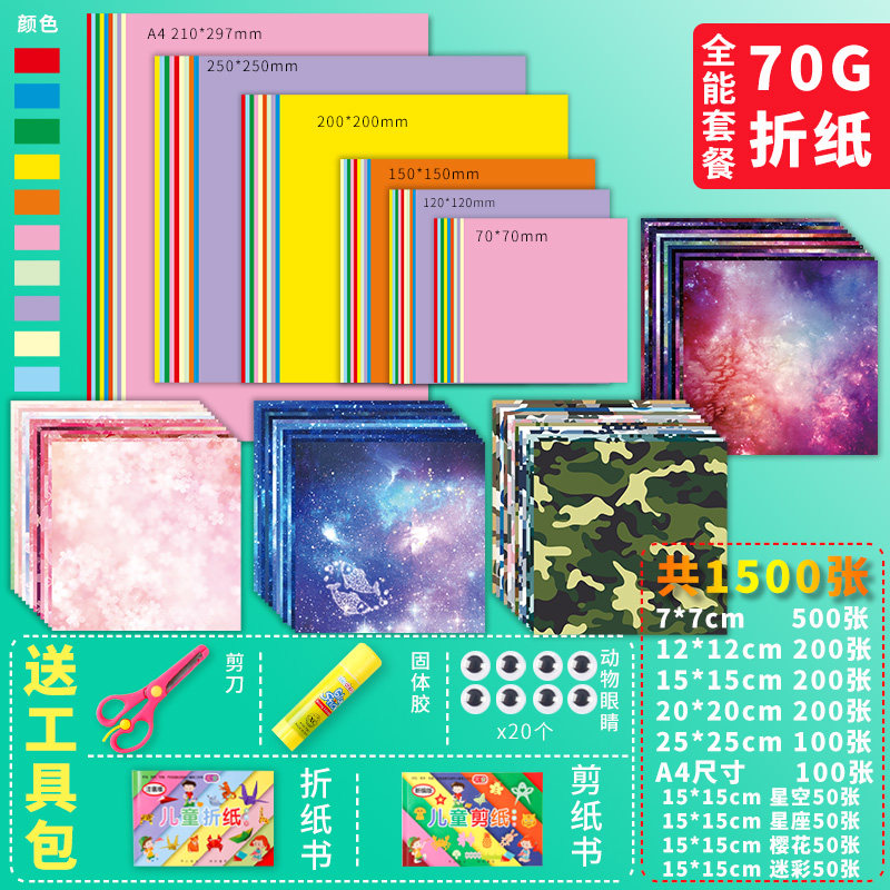 Origami paper-cut A4 square thin hard cardboard thick handmade paper material children's kindergarten thousands of paper crane colorful set wholesale making baby folding book Daquan - Taobao