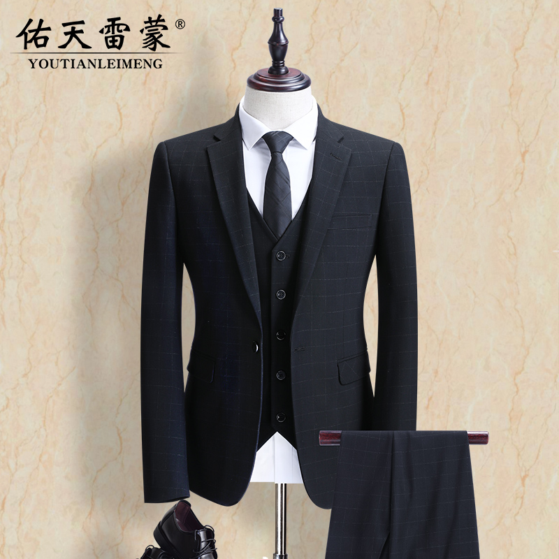Groom's wedding suit suit men's dress with groom group gown business suit plaid Three sets Korean version of the suit