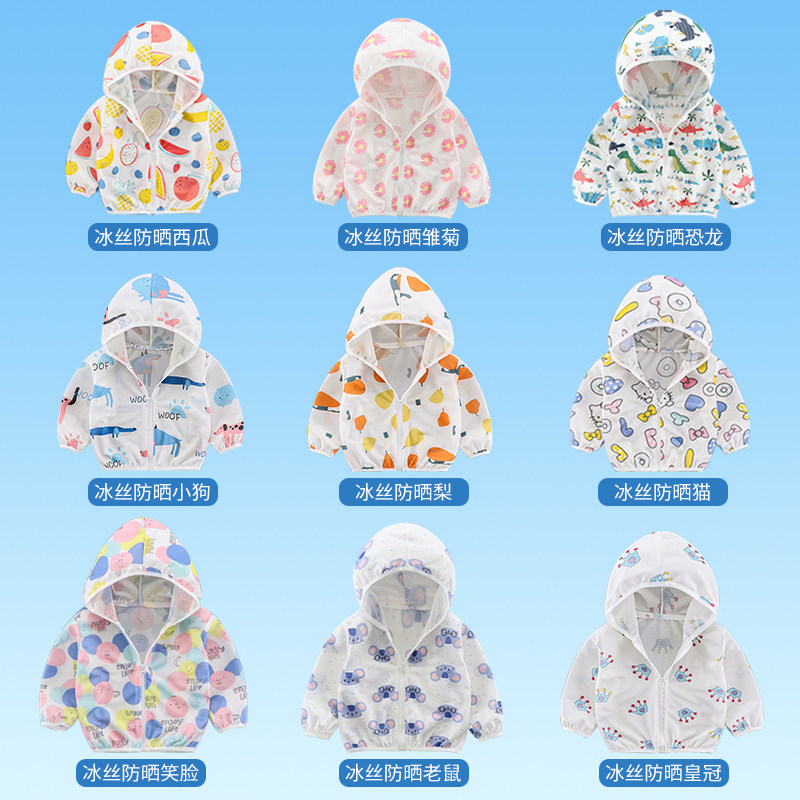 Children's sunscreen clothing anti-UV summer light breathable male and female baby sunscreen clothing baby Ice Silk Air-Conditioned Shirt