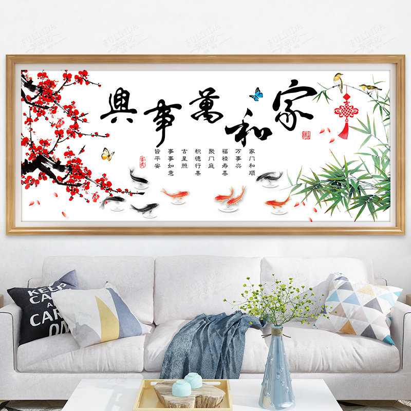 Home and Masterpiece Cross embroidered 2022 new line embroidered living room semi-embroidered atmosphere 2021 yourself embroidered with nine fish charts
