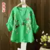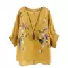 (95 cotton)bat shirt loose lantern sleeves Literary heavy embroidery large size women's clothing 2020 new top