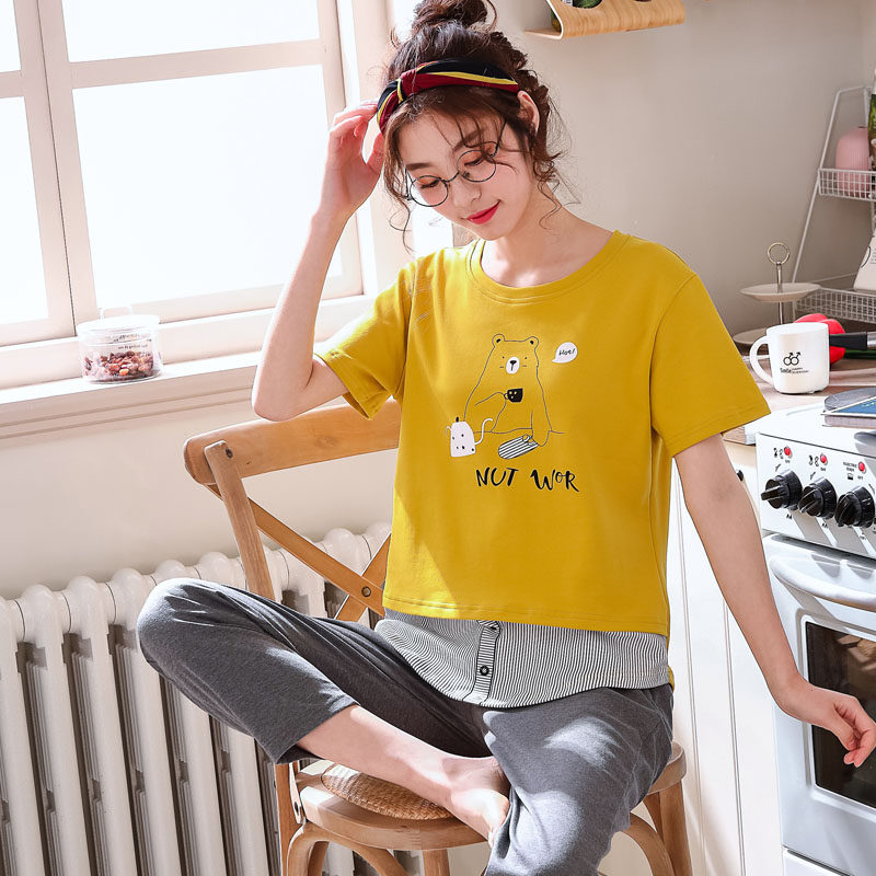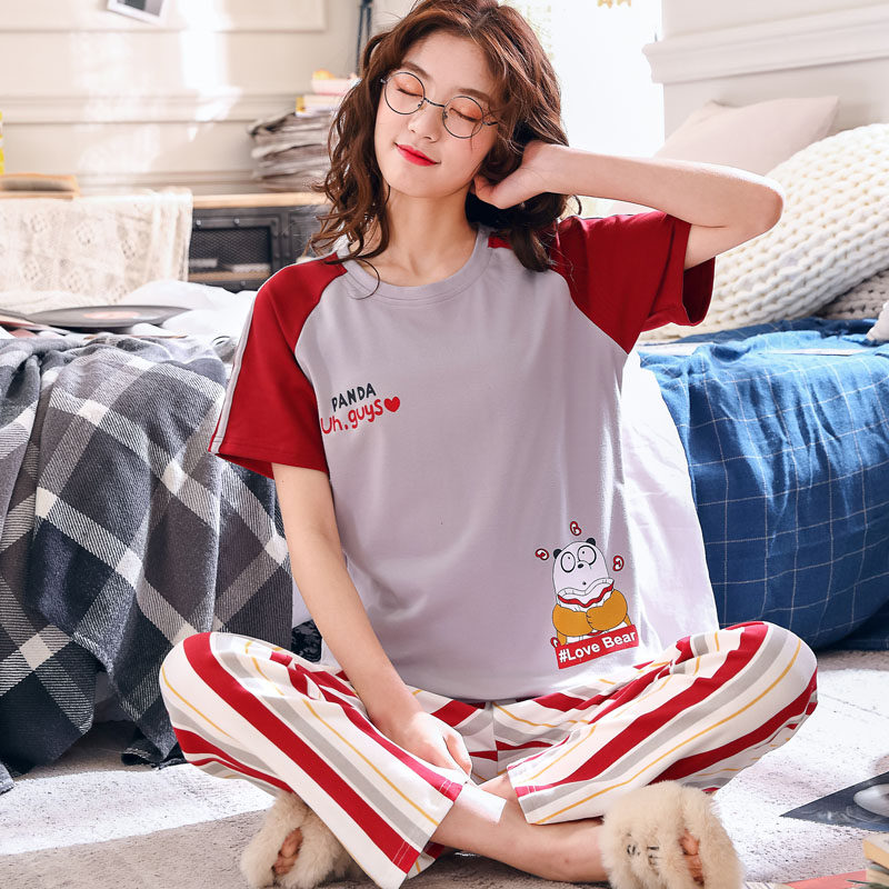 Short-sleeved trousers pajamas women's summer cotton thin sports Korean version sweet gray girlfriends home service two-piece suit