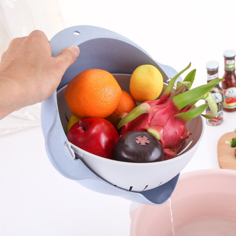 Lever basket filter basket washing basin artifact plastic double kitchen household fruit basket living room creative fruit plate
