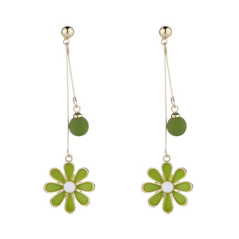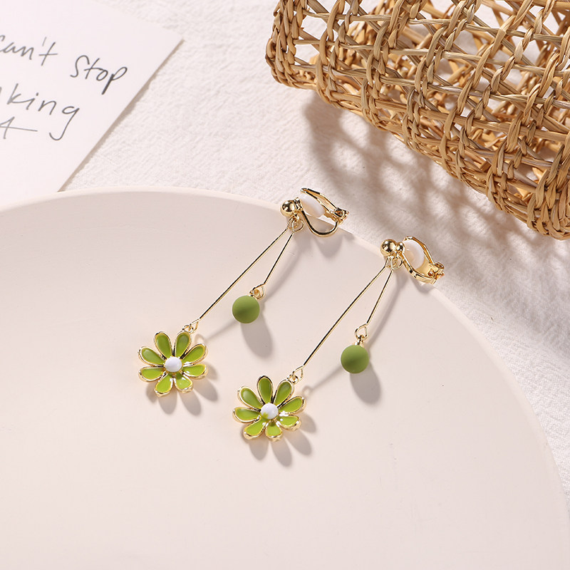 Avocado green flower daisies fresh wild earrings 2020 new trendy Korean temperament no ear pierced ear clip