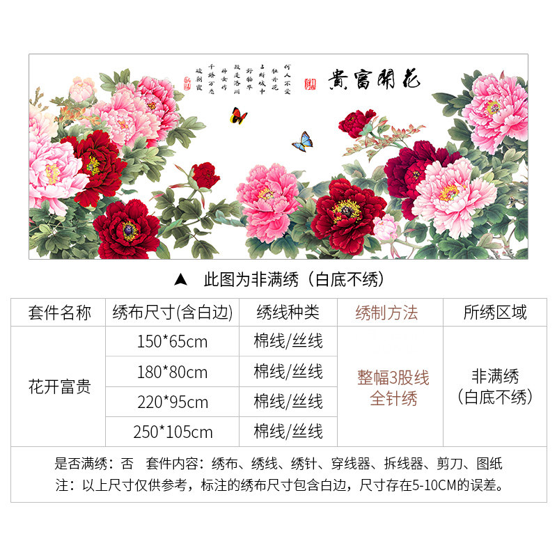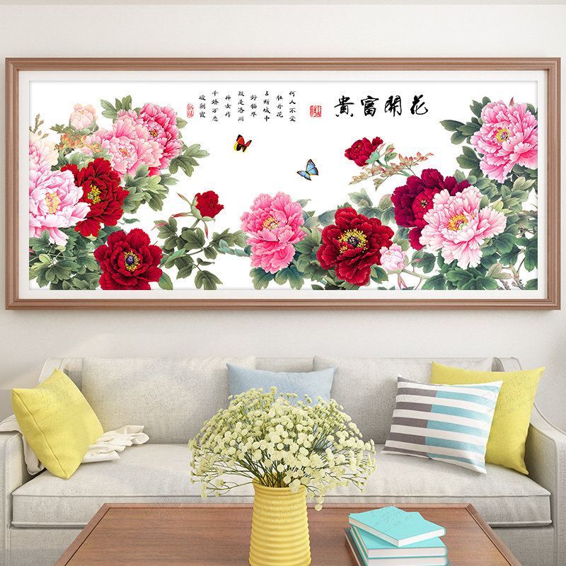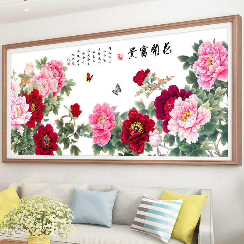 Flowers open rich and expensive cross embroidered 2022 new line embroidered large living room Atmosphere peony 2021 Semi embroidered with yourself embroidered
