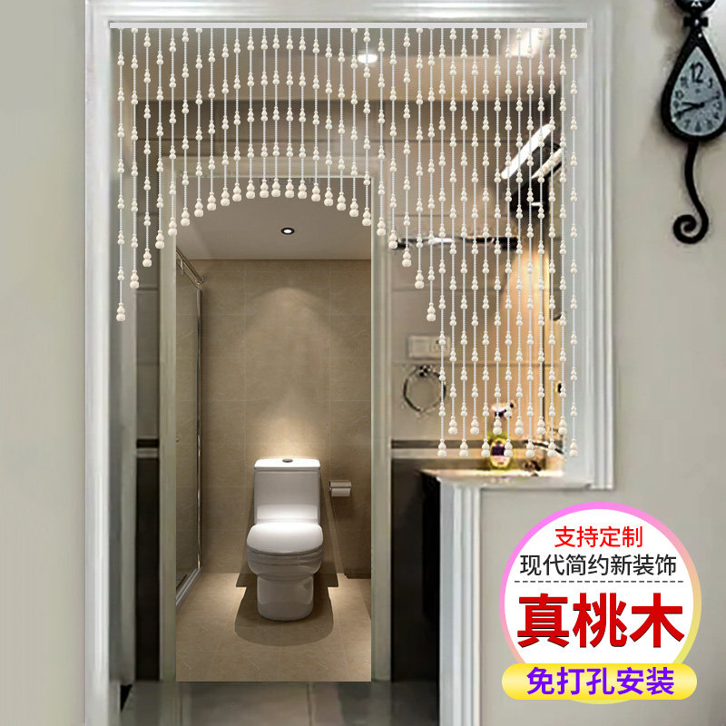 Peach wood hyacinth bead curtain door curtain free from punching and partition curtain living room toilet bedroom home door to door crystal curtain-Taobao