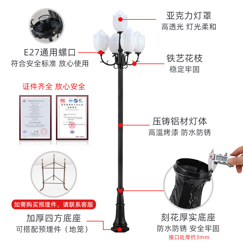 Garden light 3 meters home 220v outdoor waterproof garden villa high pole community outdoor park retro LED street light