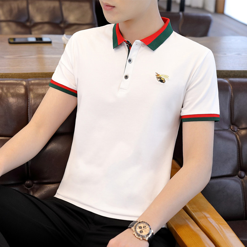Little Bee Short Sleeve T-shirt Men's Fashion Lapel POLO Shirt Men's Cotton Ice Silk T-shirt Tide Brand Collar Clothes
