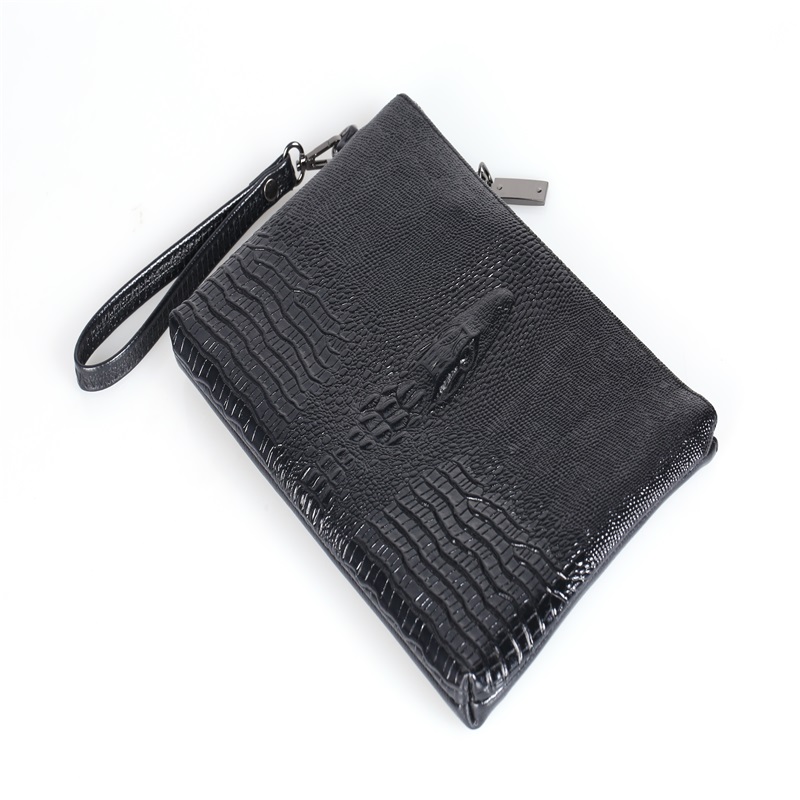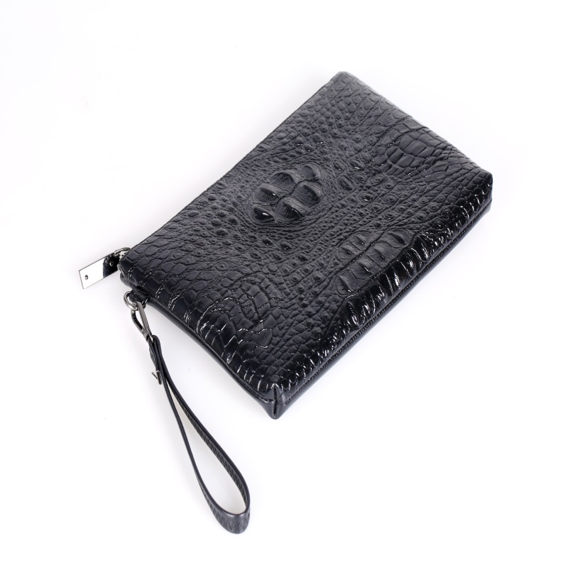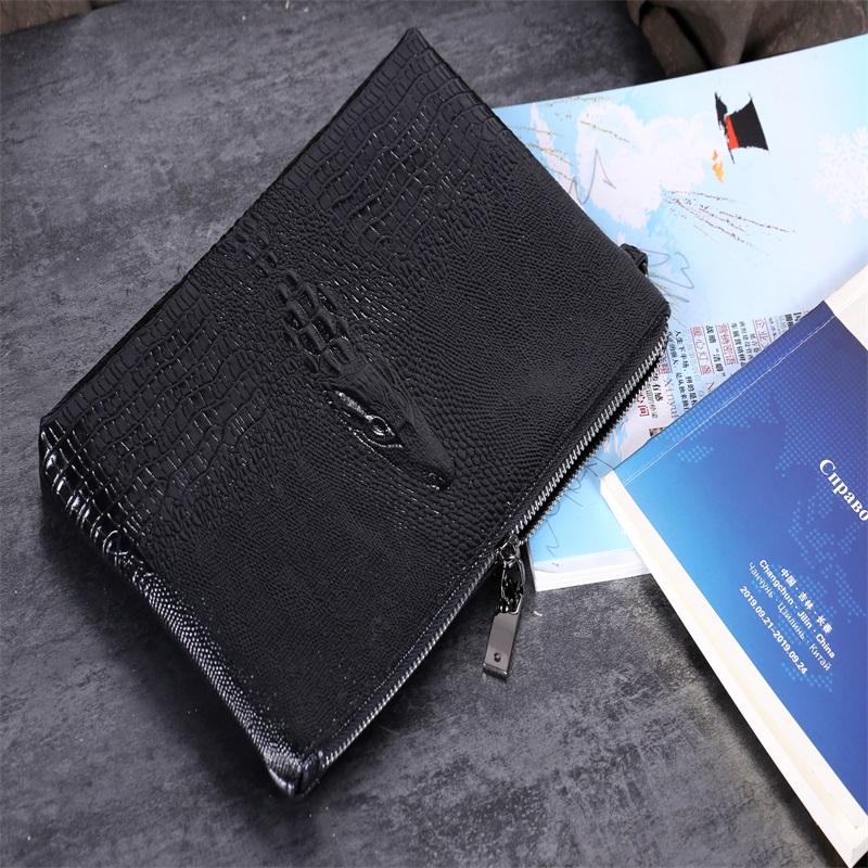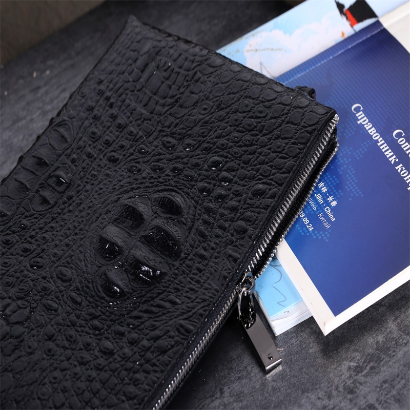 Crocodile tattoo men's hand held bag soft leather long version wallet multi-clamping pull chain large-capacity men's handbag handbag spirit little guy